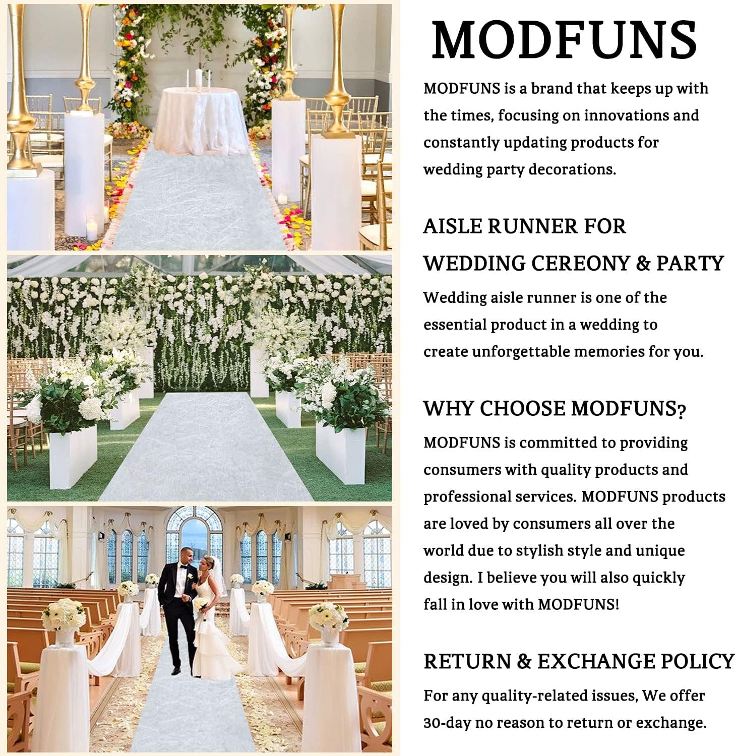 • ❤Buy With Confidence - Bride Aisle Runner: MODFUNS is a trusted brand with the professional team. If you have any questions, please kindly contact us, we will solve you issues until you’re satisfied. NOTE: Hand wash with cold water recommended with a walkway carpet for wedding. Or machine wash in the gentle cycle with a laundry bag. No bleach.