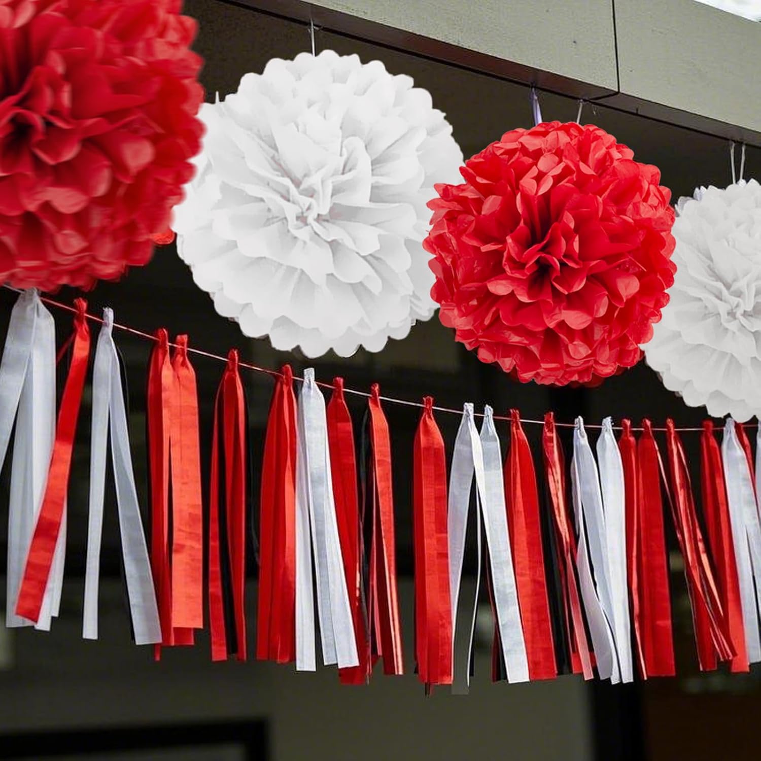 Capesaro Red and White Paper Pom Poms - 10",12" Tissue Pom Poms Decorations for Party Hanging Decor - 12 Piece Set