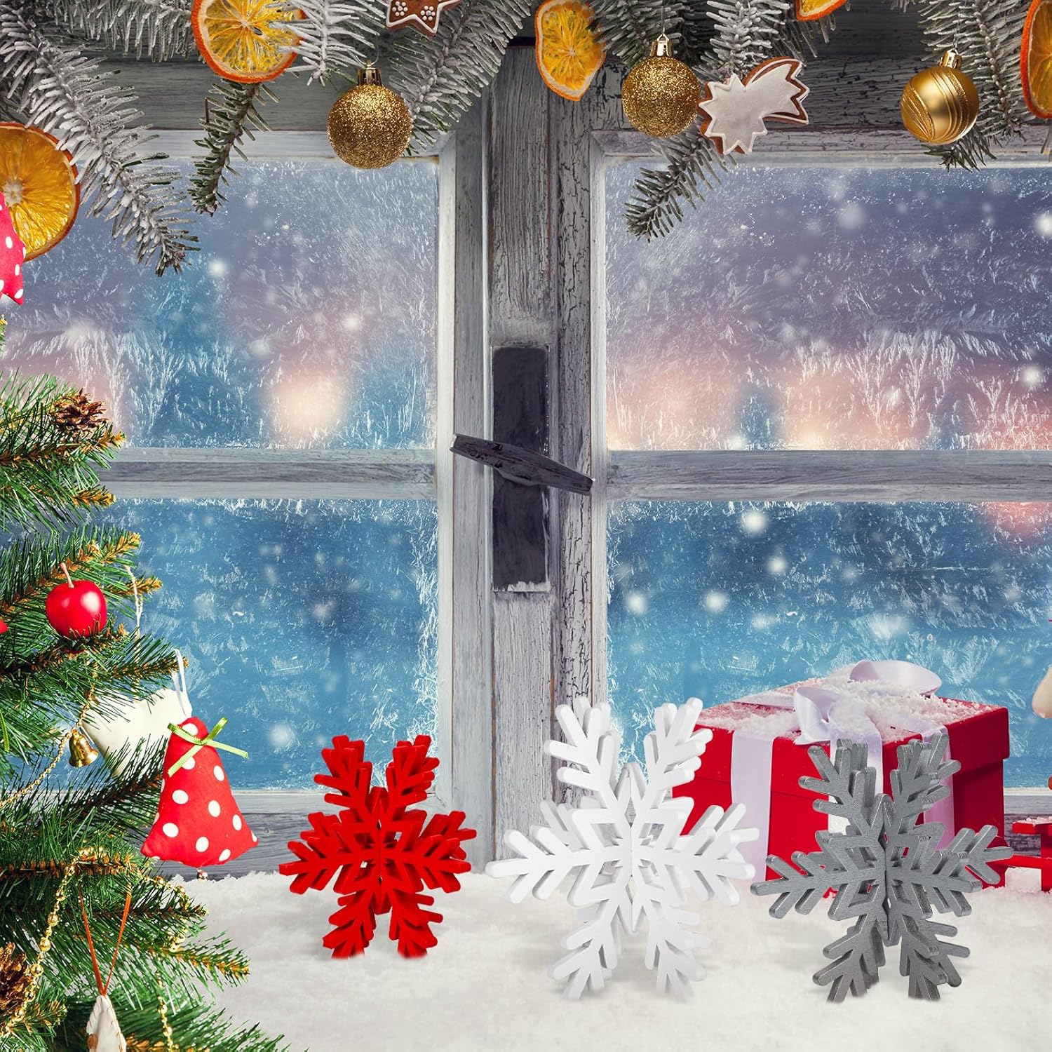 • Widely Applicable: the 3D wooden snowflake decorations Christmas can be placed on tables, windows, walls, cabinets, mantel shelves, fireplaces, bookshelves, stairs or some outdoor places; They are good supplies for Christmas parties, winter theme parties, birthdays, celebrations, anniversaries, family reunion parties and more