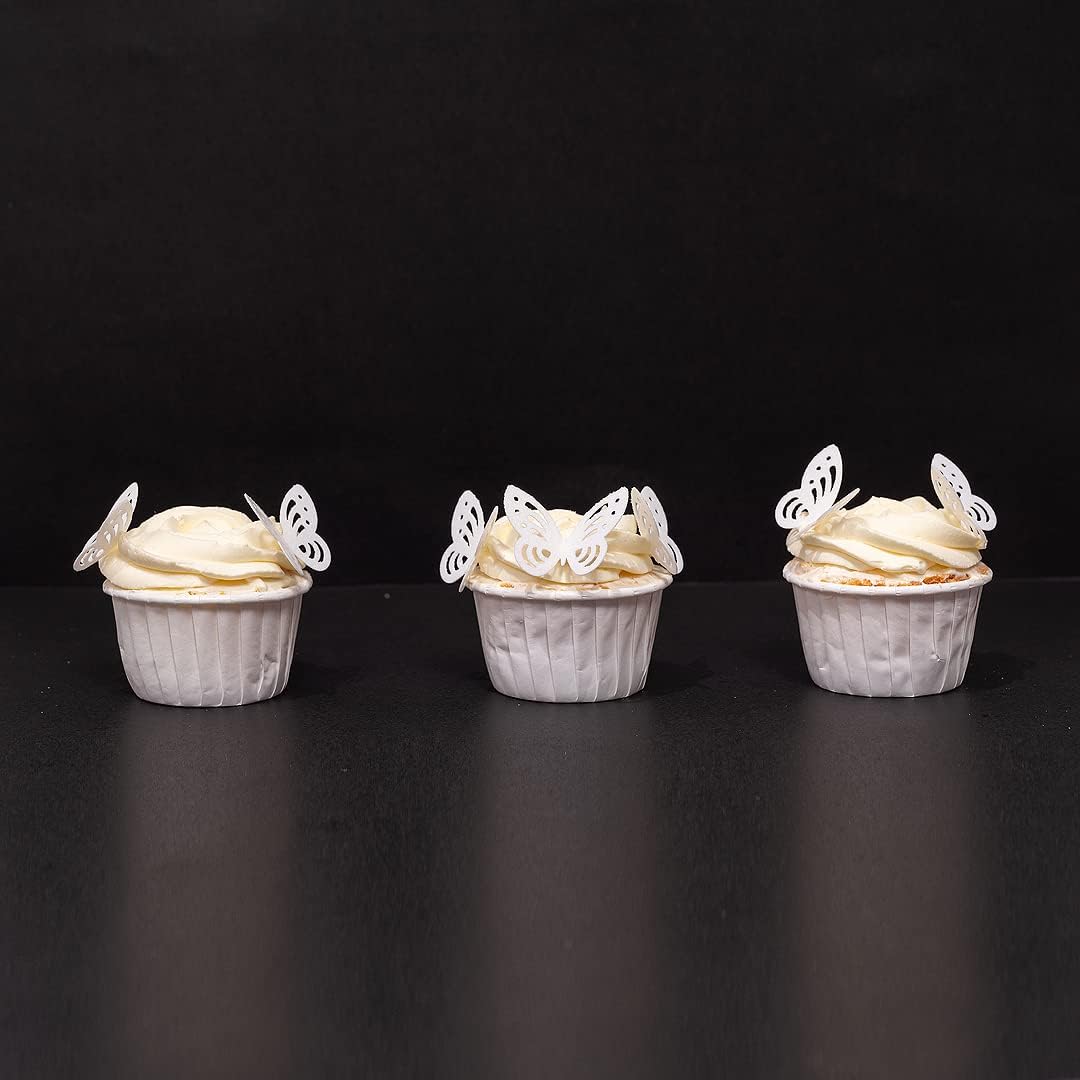 Edible Flowers Edible leaves &Edible butterflies Wafer Paper Cake Cupcake Toppers for Decorating Rice Paper Flower Food Decorations for Baking Girl Birthday Party Mix Size Color (white butterflies60)