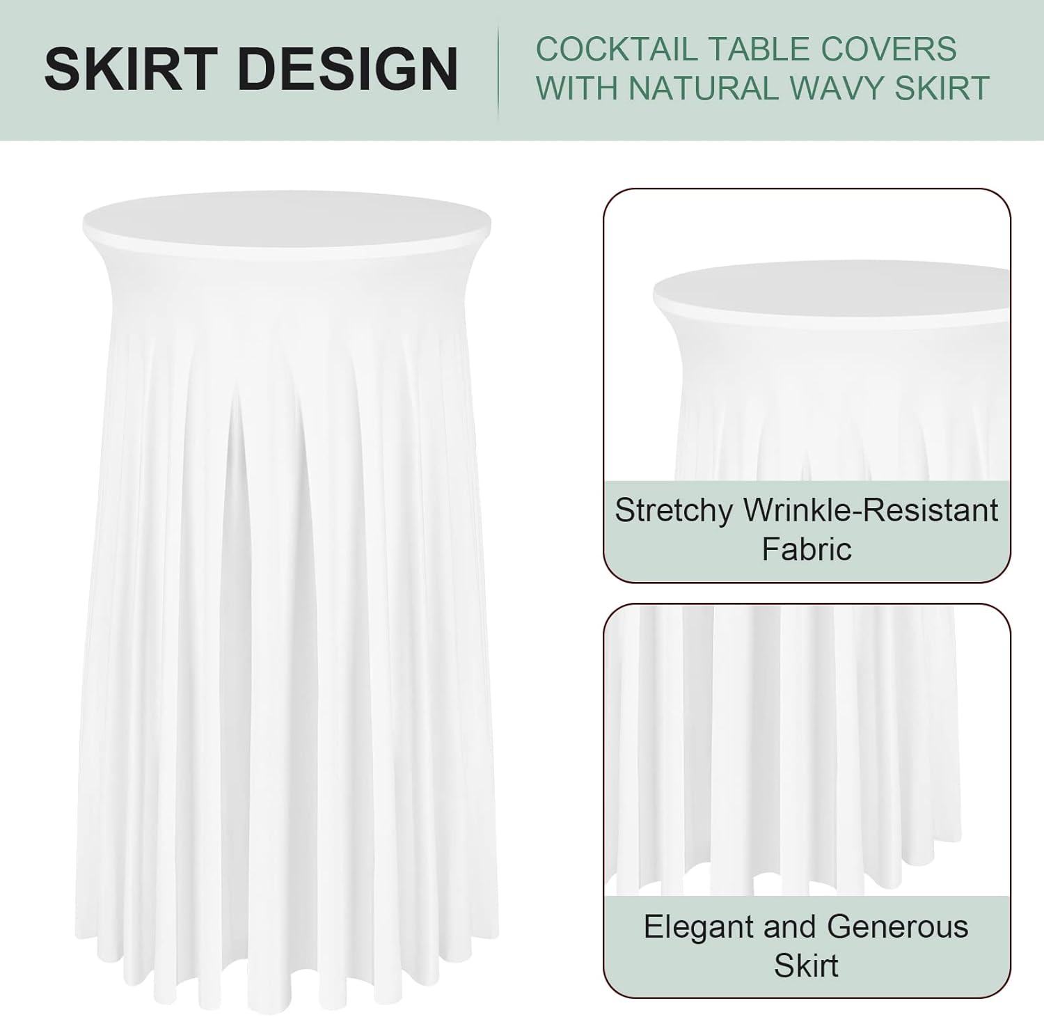 Cocktail Table Covers - 2 Pack 24"x 43" White Cocktail Table Tablecloth with Natural Wavy Round Skirt for Bar Wedding Party Banquet