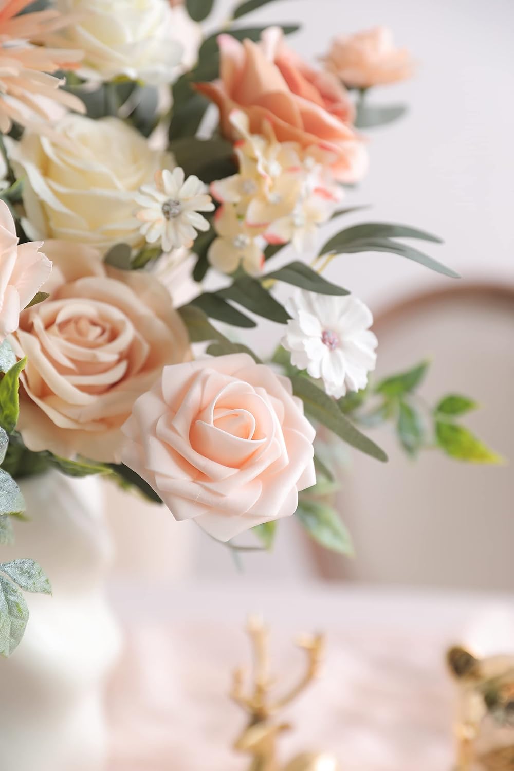 • High Quality Material: These artificial Flower are made of a soft high-Faux Silk/Foam+Plast gives,Flower types are: roses / peonies / dahlias / hydrangeas / daisies the look of fresh roses and touches soft. They are durable and could maintain vivid color for a long time. Adding a natural look regardless of the season.