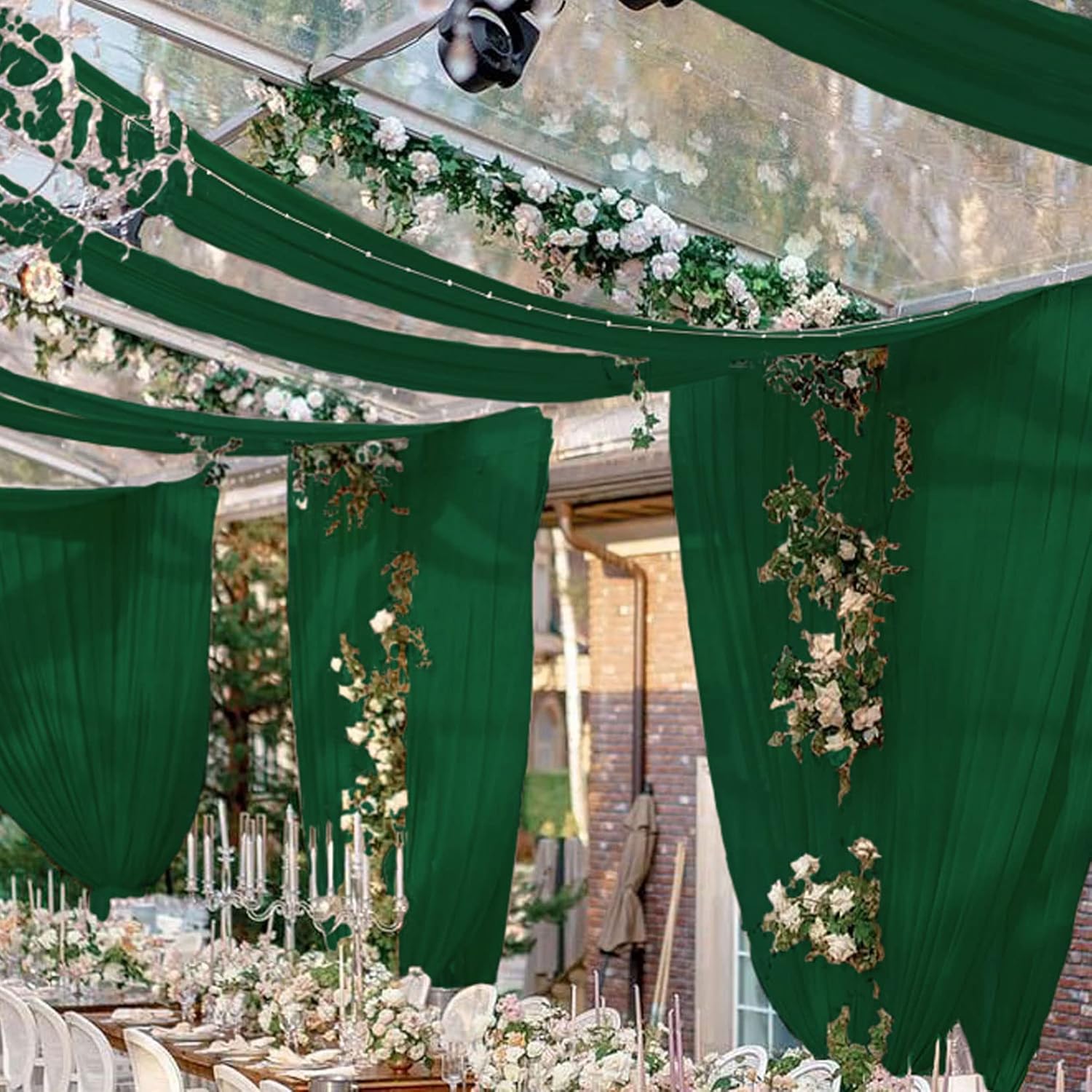 FUHSY Ceiling Drapes Emerald Green Wedding Arch Draping Fabric Chiffon Curtain Drapes 4 Panels 5x20FT Sheer Fabric for Draping Wedding Archway Tent Ceiling Drapes for Bed Canopy Ceiling Backdrop Decor