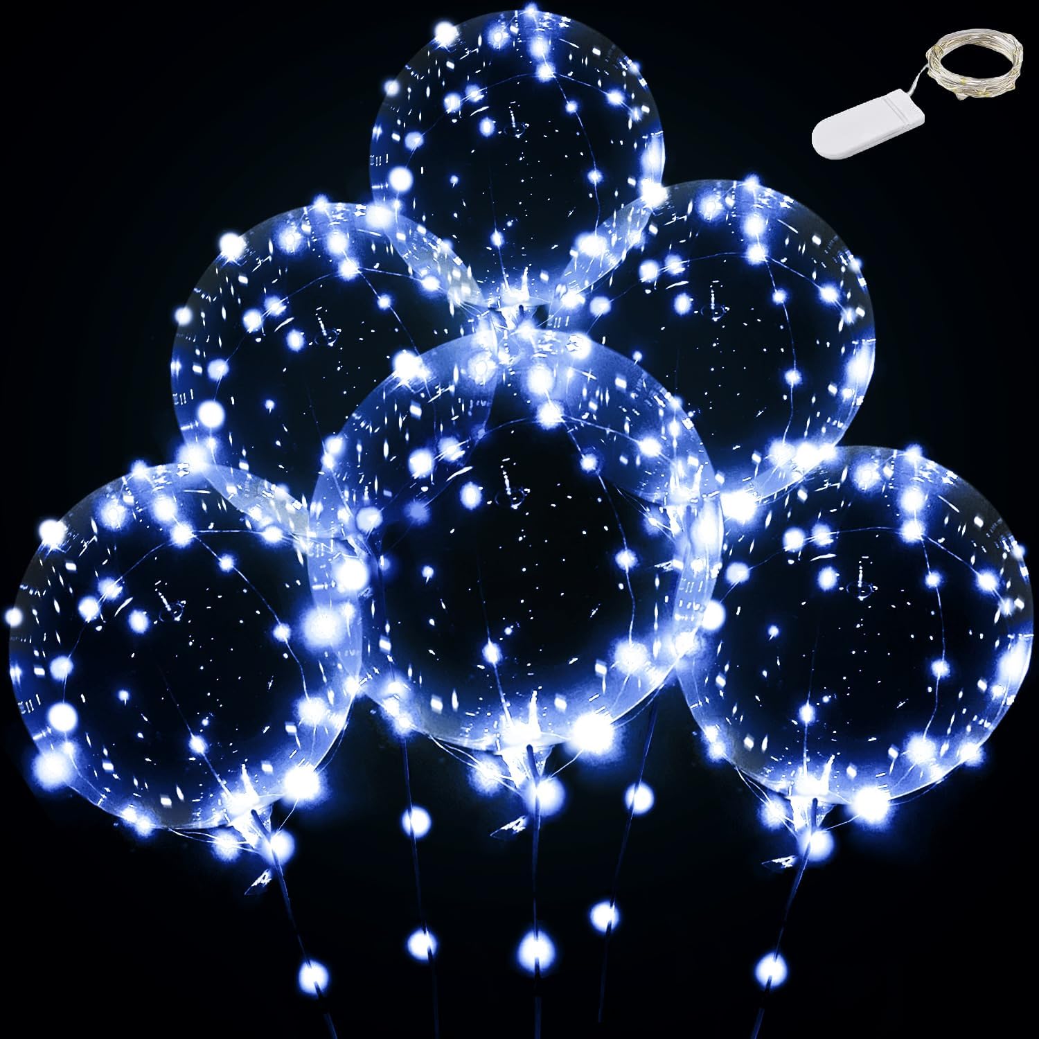 • 🎈INCLUDES EVERYTHING 15 clear balloons (Extra balloons can be used for DIY ), 12 10ft cold white string lights(Included batteries 🔋 ), use some and save the rest for next time! You get a wonderful lighted experience that turns any gathering into a festival. These balloons can be filled with either helium or air. Simply use a helium tank or an electric air pump. Much easier than blowing up lesser party balloons.