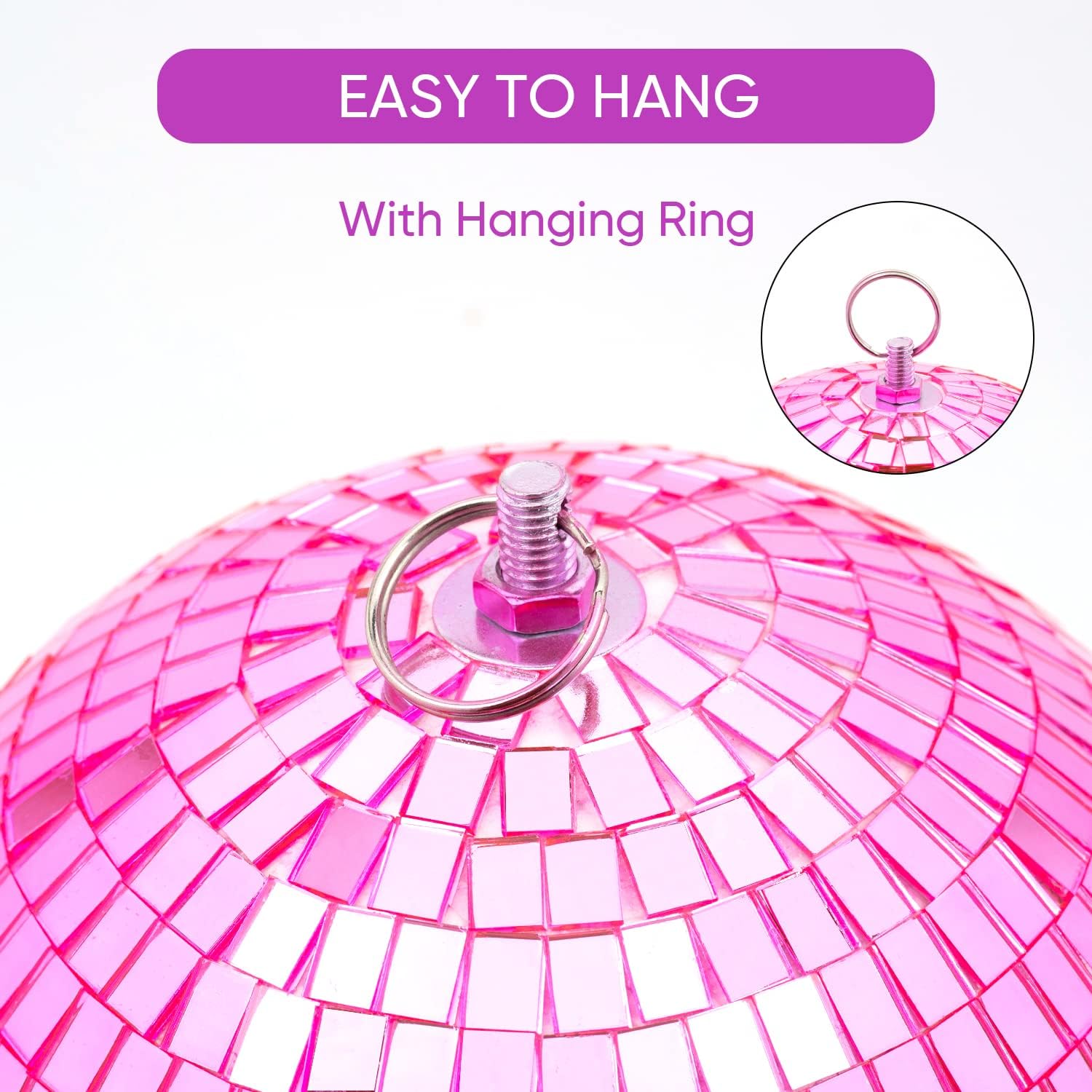 • Easy Hanging Disco Ball: The top of the disco ball has a ring, making it easy for you to hang or decorate just about anywhere; It's very light, so you don’t have to worry about it pulling down on the ceiling; You can simply hang disco ball on ceilings, wall, doorway or Christmas tree and disco ball will provide a splendid light effect. Hundreds of mirrors throughout this disco ball make it perfect to light up a space