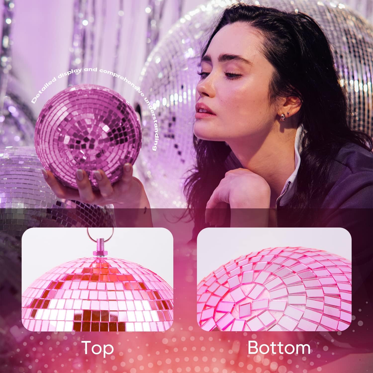 • Premium Pink Mirror Ball: This shimmery mirror ball is well-constructed with foam inner ball covered; When light is directed at mirror ball, each facet reflects light back into the air, casting it into dozens of small beams that stream out in all directions; The disco ball can create a unique, magical effect; The large disco ball have mirrored surfaces that refracts sunlight to fill the room with a warm glow , ideal for school dances, weddings and other big parties