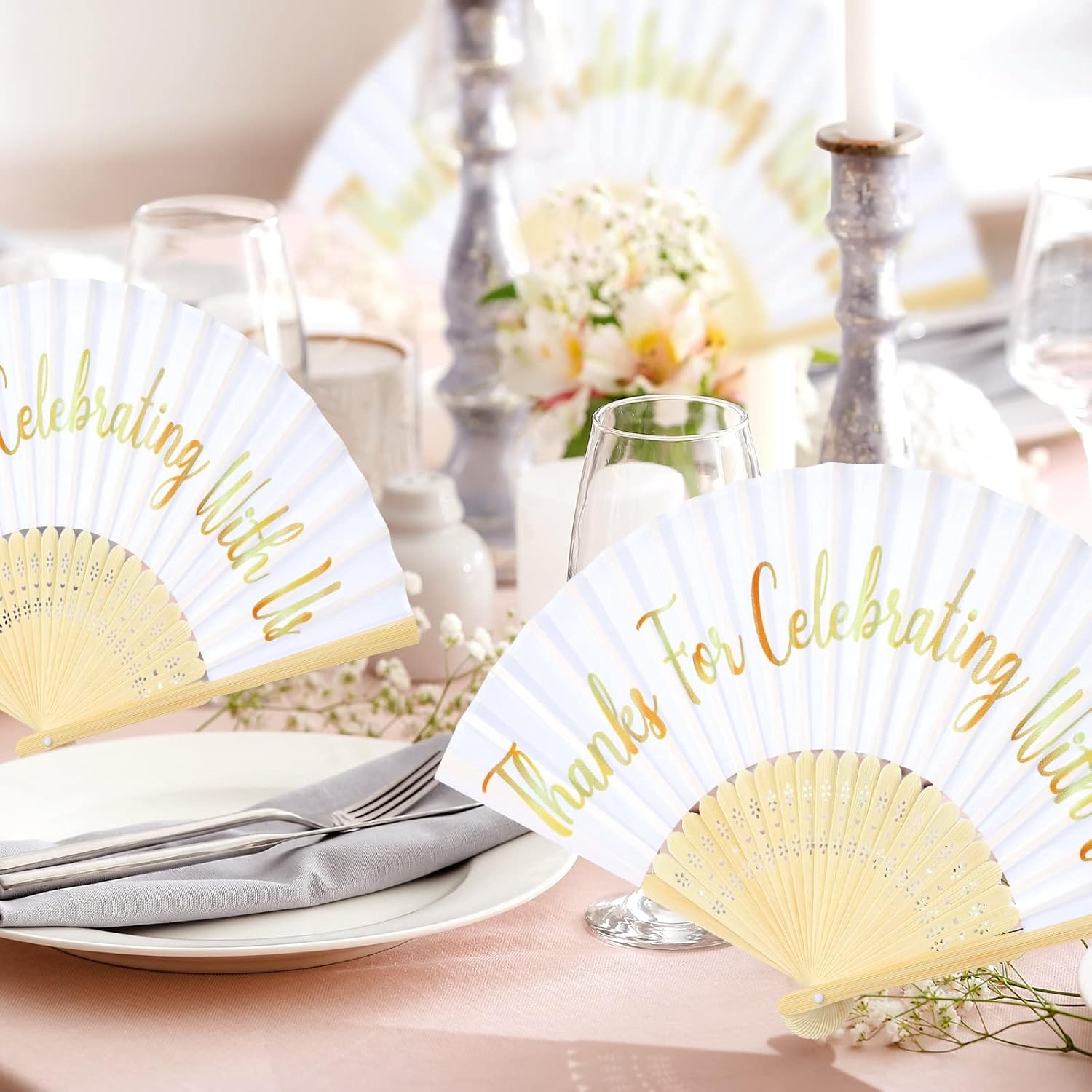 • Sufficient in Quantity: you will receive 50 pieces folding fans hand held, each printed with the text [ Thanks for Celebrating with Us] , which are sure to be well received by guests as quality gifts for them; These wedding folding fans will also cool everyone off at a summer party