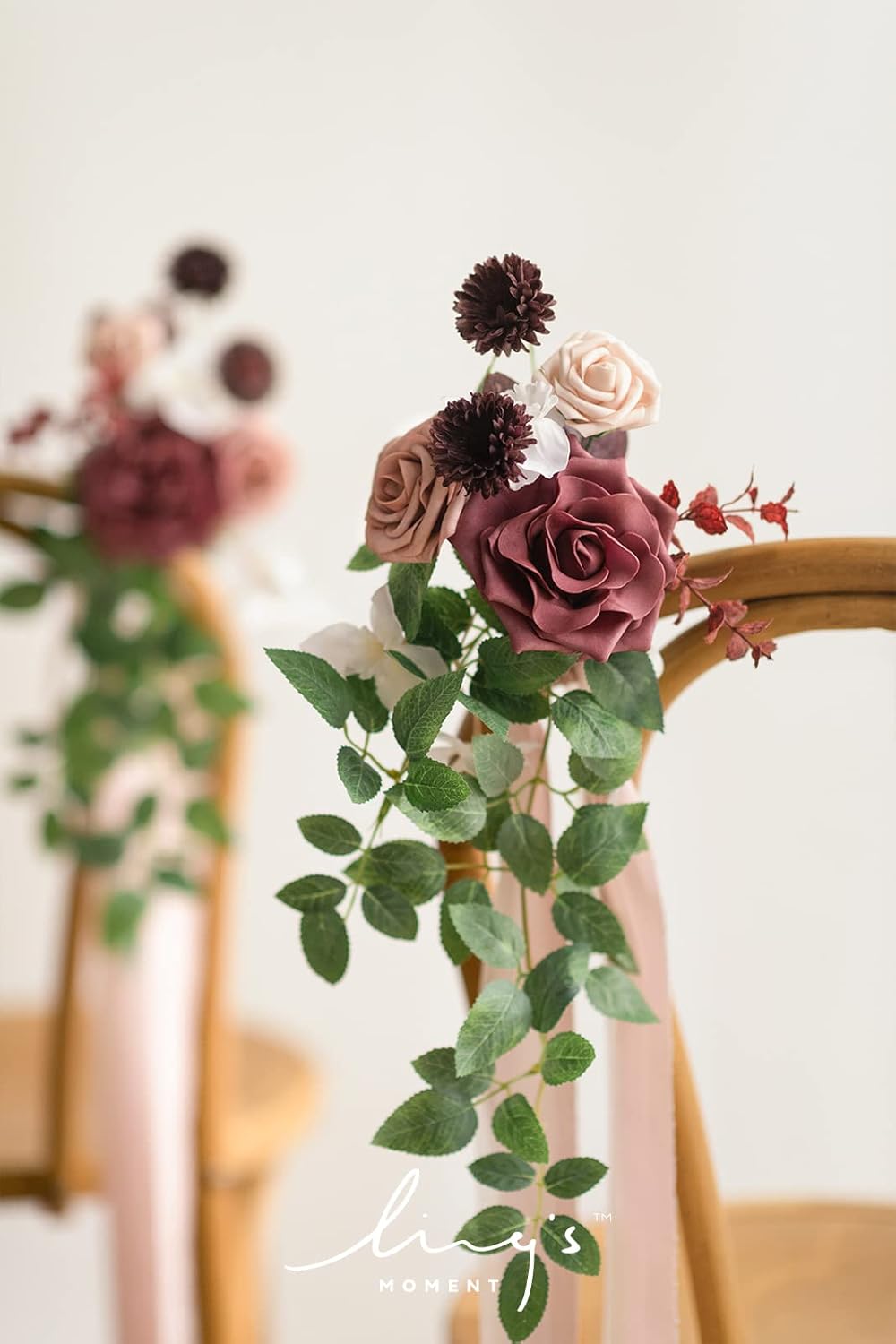 Ling's Moment 8pcs Wedding Artificial Aisle Pew Flowers Chair Decorations Arrangements with Chiffon Ribbons Dusty Rose Mauve for Ceremony Chair Back Floral Decor Reception Church Party Outdoor