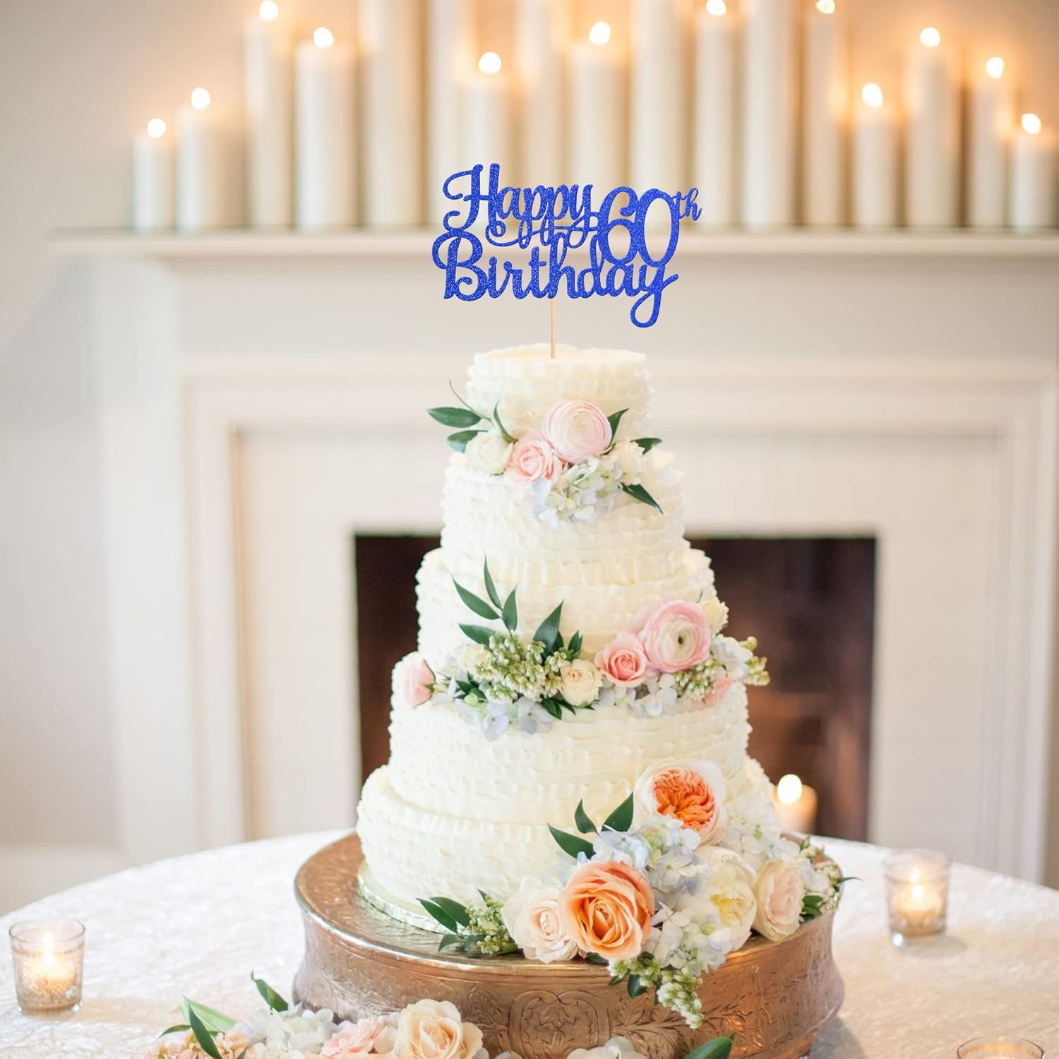 1 PCS Happy 60th Birthday Cake Topper Glitter Cheers to 60 Years Birthday Cake Pick 60 Fabulous Cake Decoration for Happy 60th Birthday Anniversary Party Decorations Supplies Blue