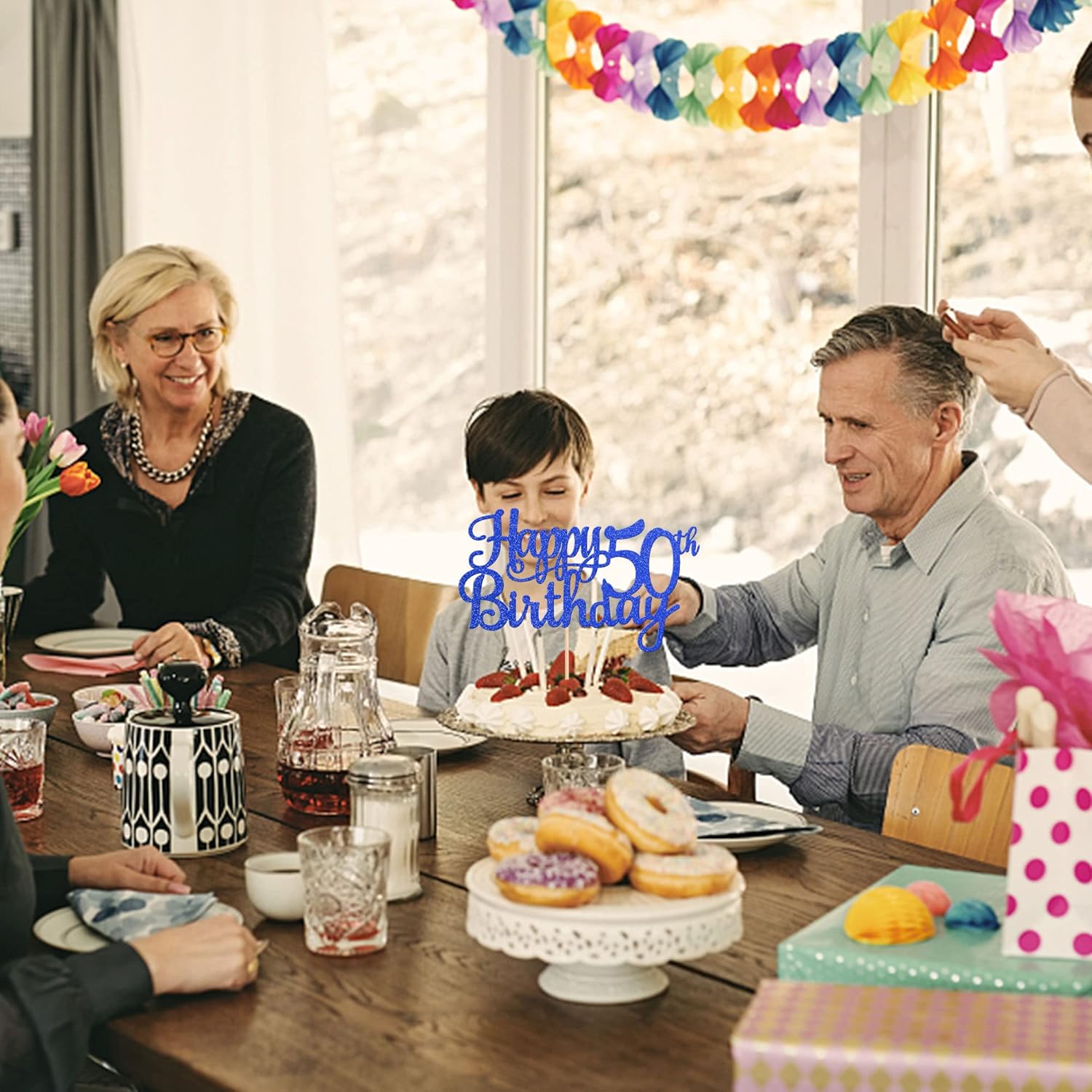 1 PCS Happy 50th Birthday Cake Topper Glitter Cheers to 50 Years Birthday Cake Pick 50 Fabulous Cake Decoration for Happy 50th Birthday Anniversary Party Decorations Supplies Blue