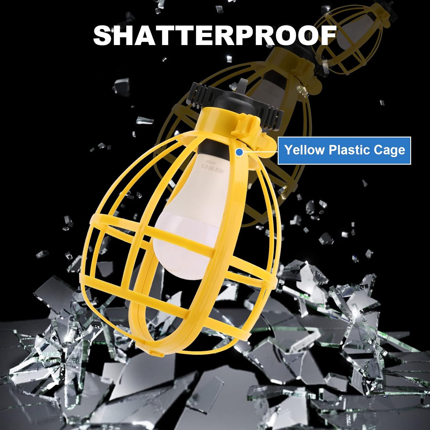 • 【Weatherproof & Commercial Grade】- Outdoor string lights are IP65 waterproof listed, the insulation material can protect the strand from sun, wind, rain, snow. 16AGW wire flexible heavy-duty and durable.Yellow plastic cage protects the bulb from damage.