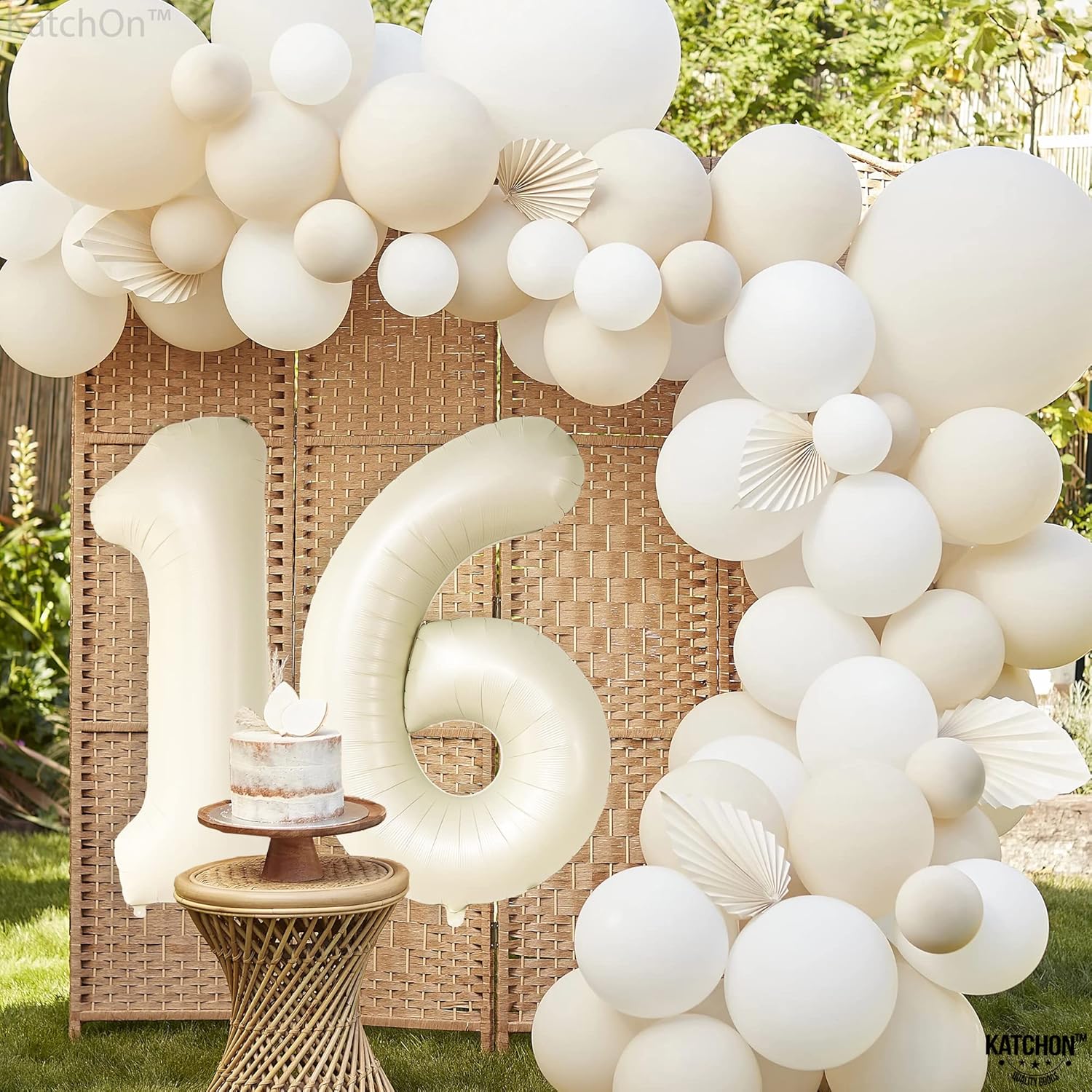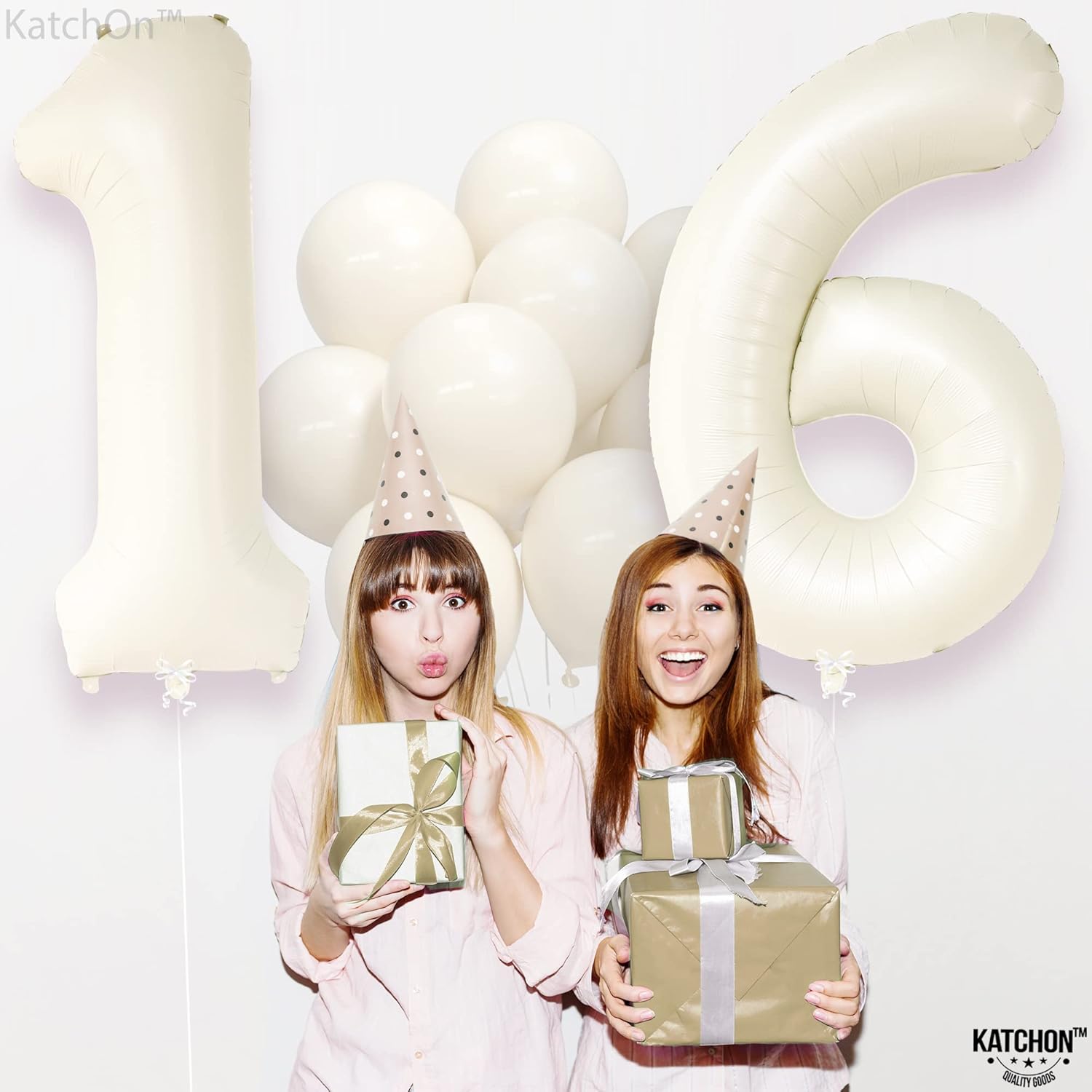 KatchOn, Cream 16 Balloon Numbers - Large, 40 Inch | 16 Birthday Balloons for Sweet 16 Party Decorations