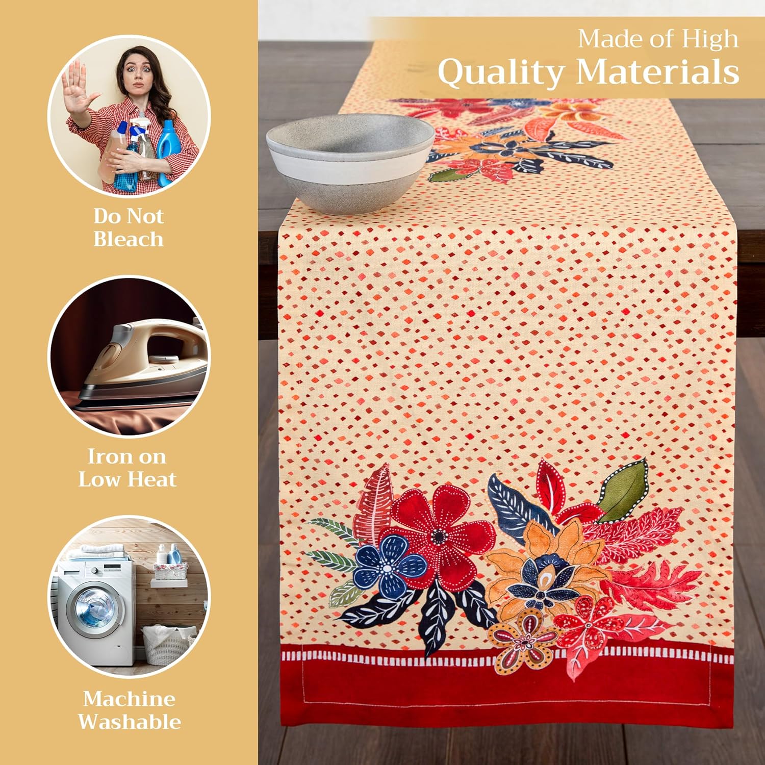 • Enhance Your Home: Crafted from 100% cotton, this reusable table runner adds a warm, seasonal touch to your dining decor. Ideal for Thanksgiving, Halloween decorations, or Christmas decorations—pair it with matching linens for an elegant fall or holiday gift