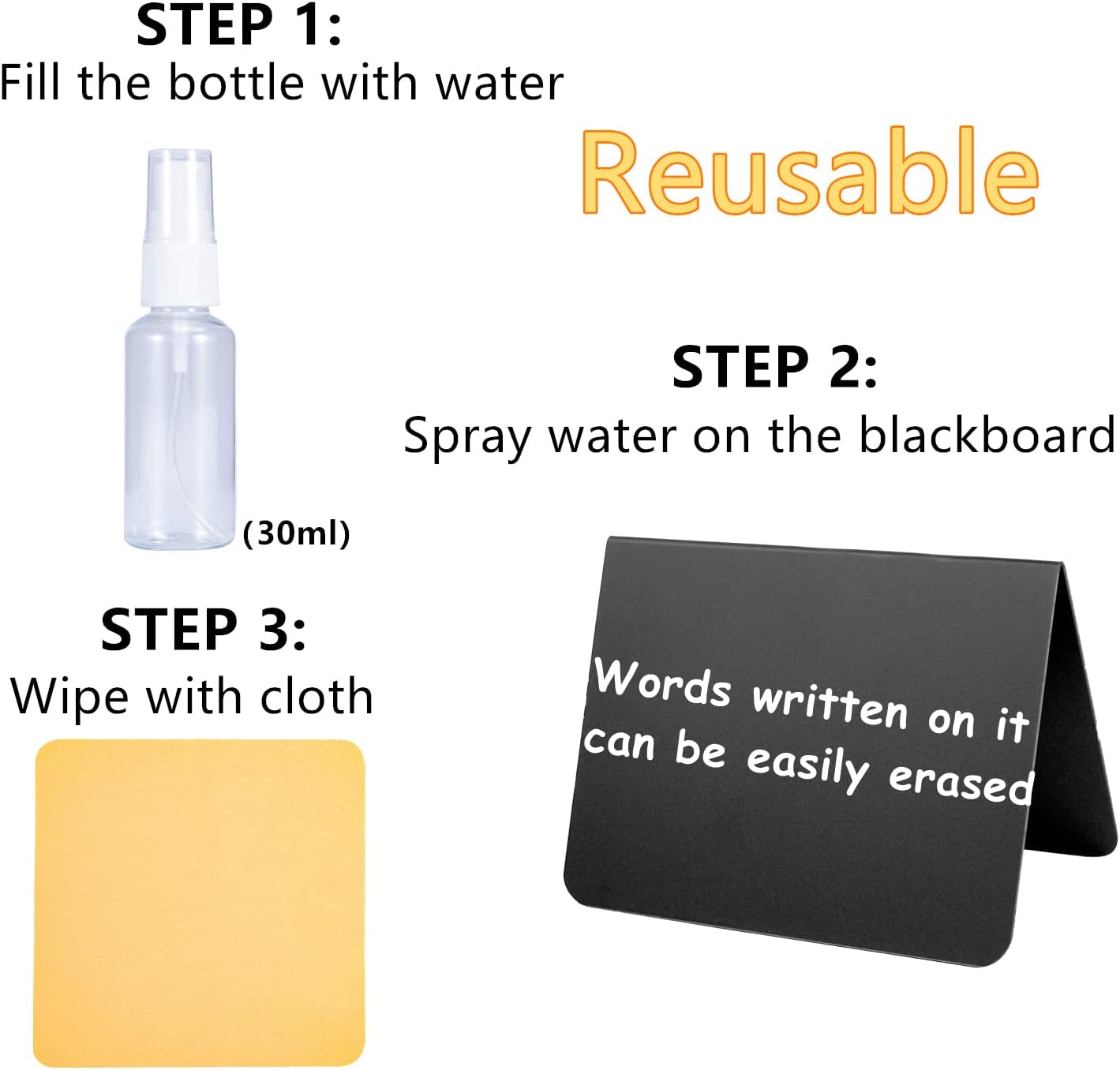 • Easy to Write & Erasable: 20pcs food signs for party buffet, 12 colors of water-based chalk (These mini blackboard match the pen perfectly) , equipped with bottles and cleaning cloth, you can use them to wipe clean easily, they can be reused