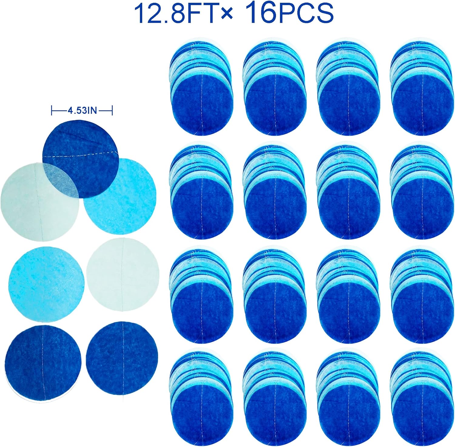 • 🔵PACKAGE CONTAINS- 16 packs of royal blue and white circle dot party garland banner,each string is 12.8 feet/3.9 meters with 30 pcs polka dots, Total is 62.4 meters/205 feet.