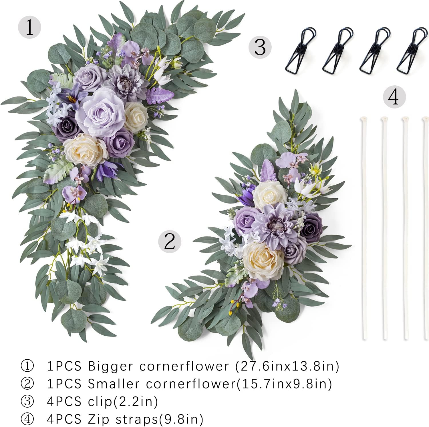 ponatia Wedding Arch Flowers (Pack of 2), Artificial Purple Flowers for Wedding Welcome Signs Decorations and Arch Flower for Ceremony Reception Decoraction (Lilac & Cream)