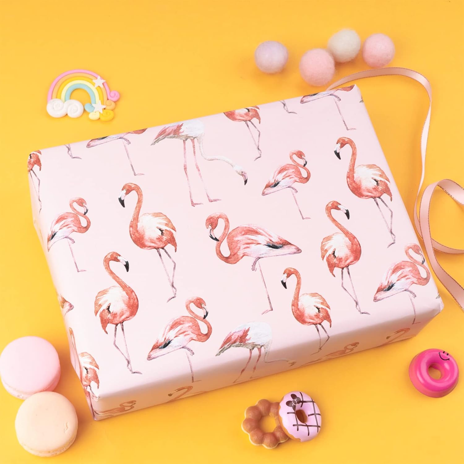 • REVERSIBLE: Adorable flamingo printed on one side, pink and white polka dots printed on the reverse. Two different designs make unique and varied gift presentations easy