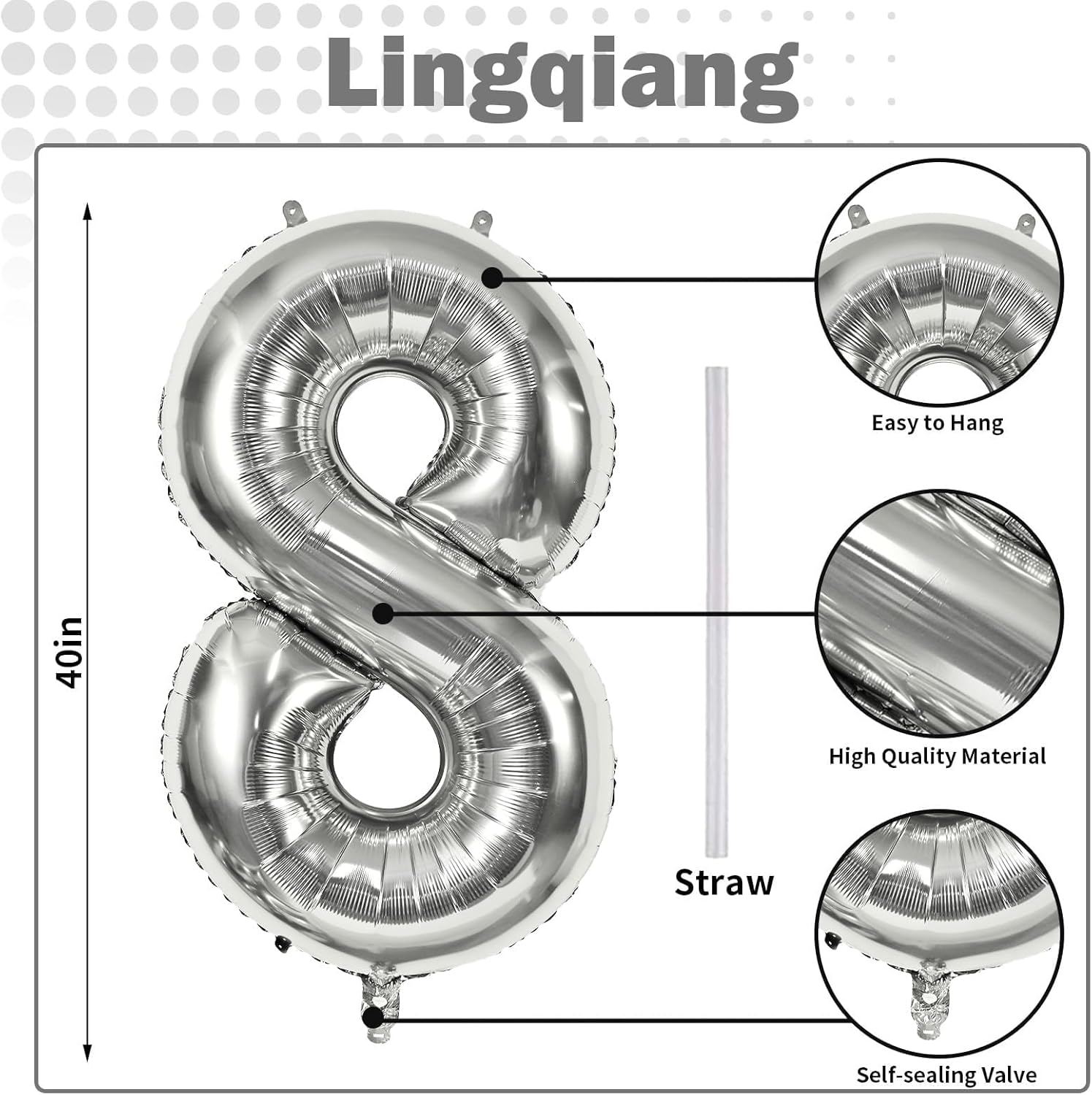 • 🎉 Silver Number 8 Balloon 🎉 - You will get 1pc 40 inch mylar foil number 8 balloon and 1pc straw. Perfect for 8th 18th 28th 80th 85th birthday or anniversary party decorations supplies.