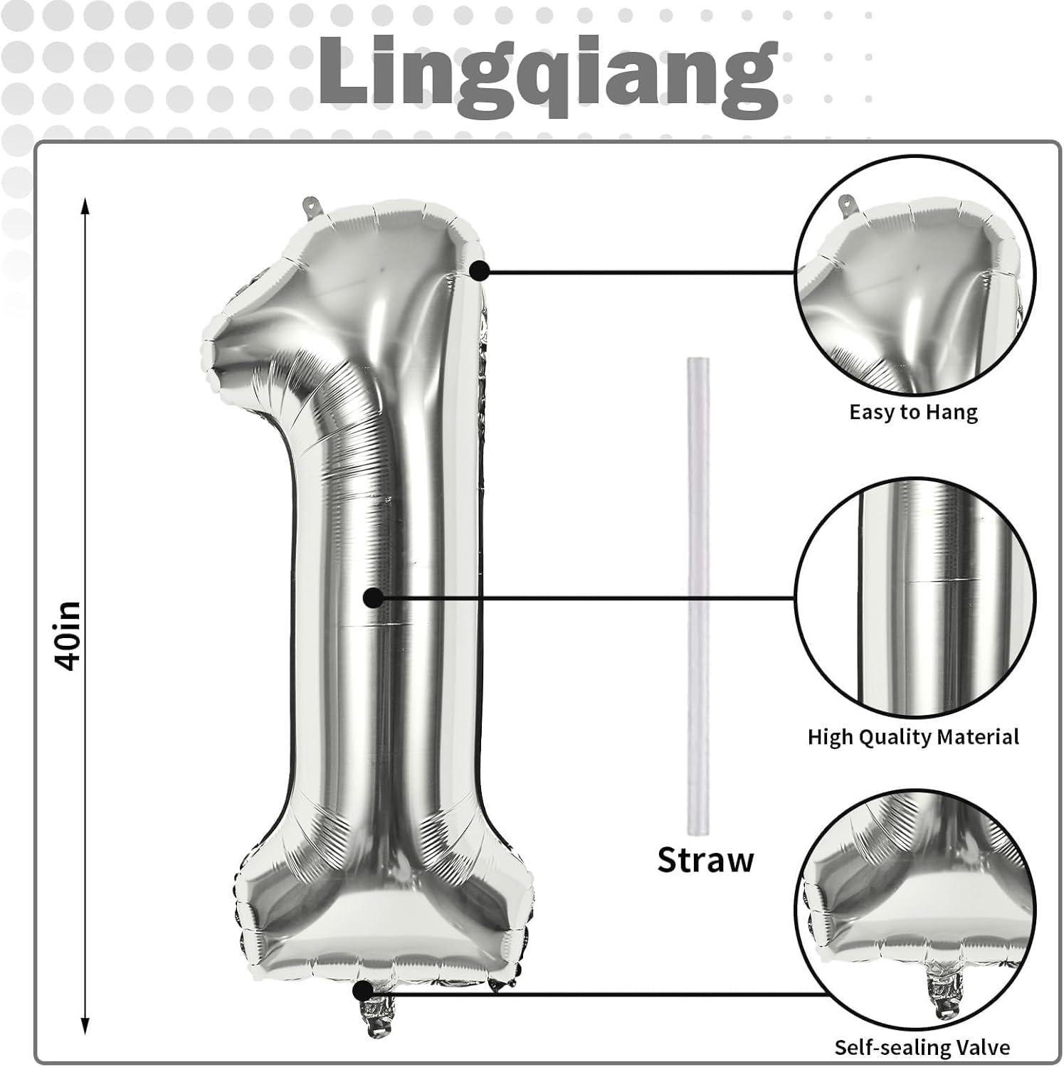 • 🎉 Silver Number 1 Balloon 🎉 - You will get 1pc 40 inch mylar foil number 1 balloon and 1pc straw. Perfect for 1st 10th 12th 13th 15th 16th 17th 18th 21st birthday or anniversary party decorations supplies.