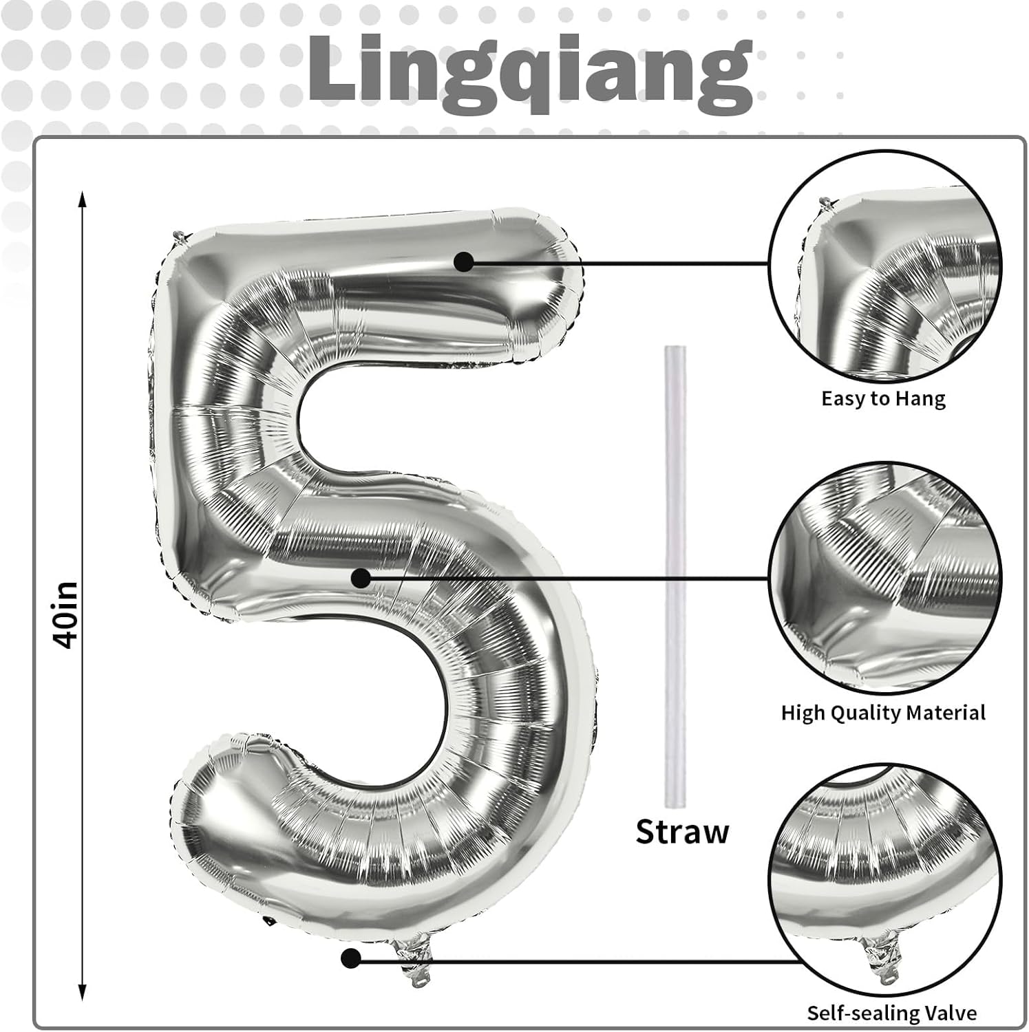 • 🎉 Silver Number 5 Balloon 🎉 - You will get 1pc 40 inch mylar foil number 5 balloon and 1pc straw. Perfect for 5th 15th 25th 50th 45th birthday or anniversary party decorations supplies.