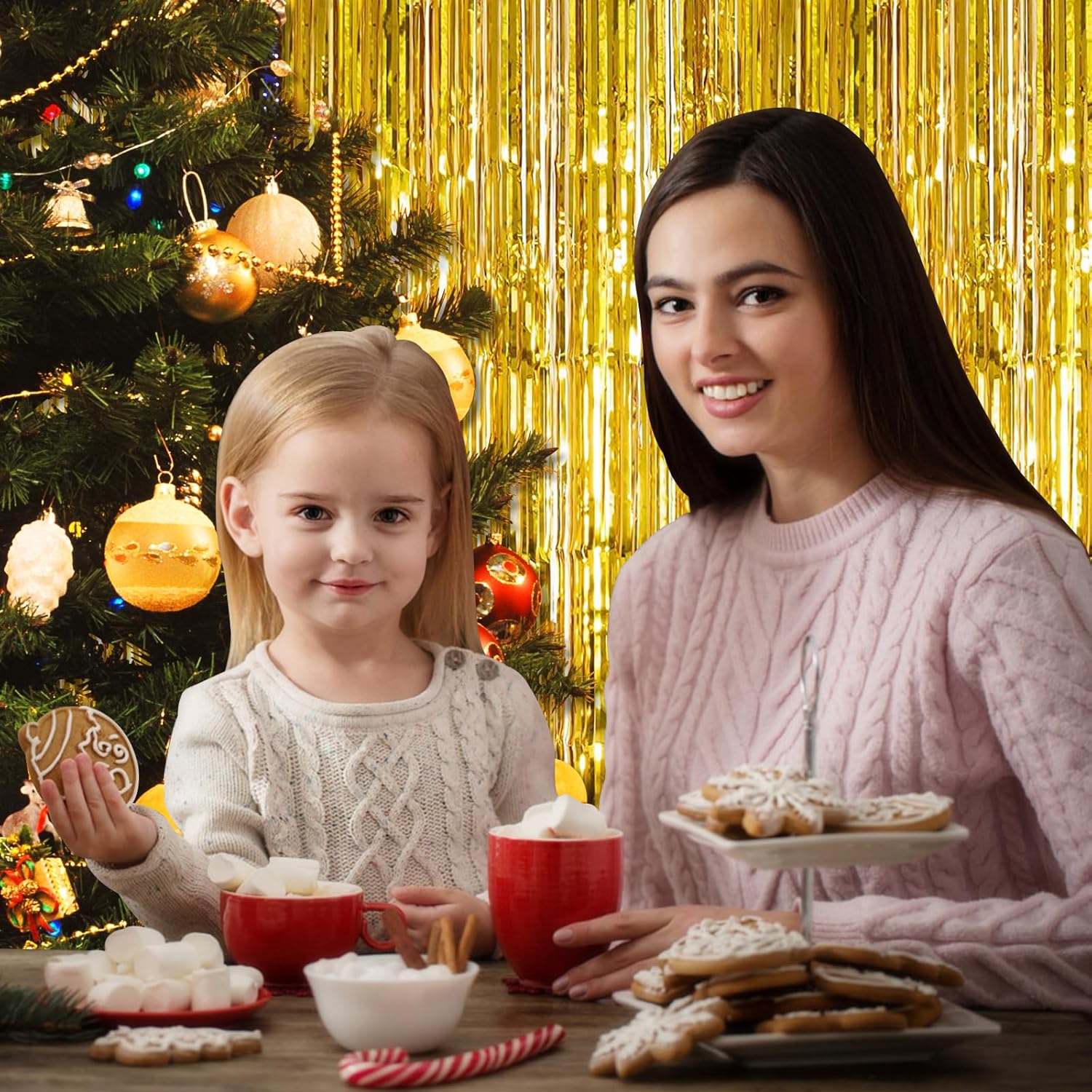 10 Pack Gold Backdrop Curtain 3.2ft x 8.2ft Metallic Tinsel Foil Fringe Curtains Photo Booth Background for Birthday Party Decoration Baby Shower Engagement Wedding Christmas Decoration (Gold)