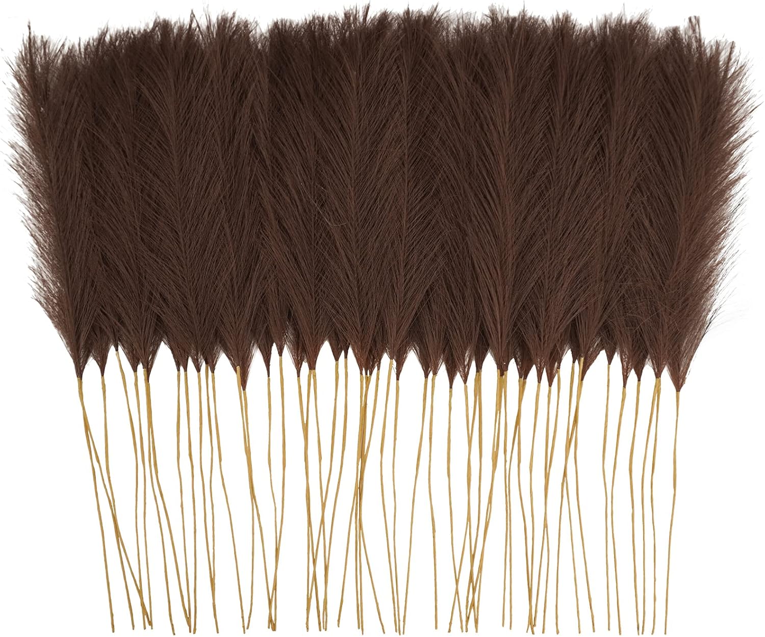 50pcs Faux Pampas Grass Decor, 21.6" Short Artificial Pompous Grass Floral Fake Pompas Grass Branches Vase Filler Flower Arrangement for Home Wedding Boho Decor, Brown
