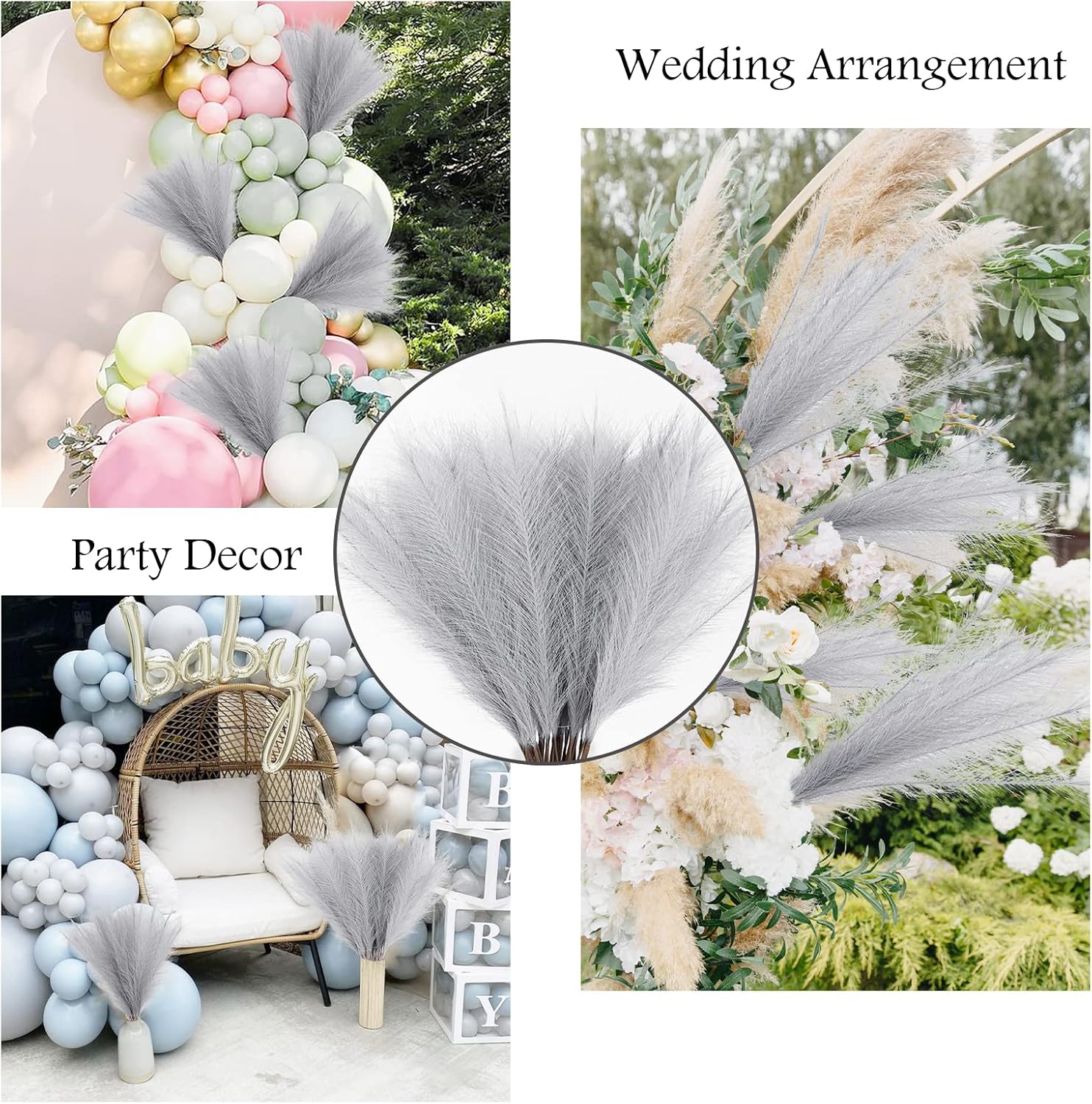 • Grey Pampas Grass Decor: You will get a pack of 50pcs artificial pampass grass, each stem 21.6”, and the heads of each stem is designed you can fluff them up for a fuller look, create a chic minimalist, or Bohemian modern display to complement your existing home arrangement