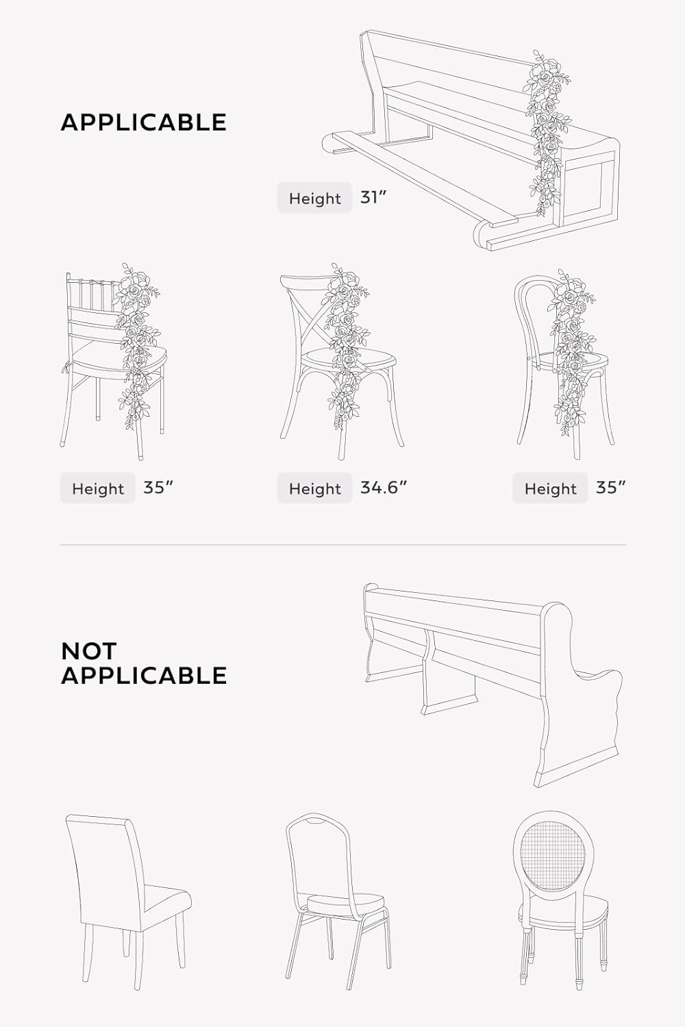 • EASY TO USE: Each aisle decoration comes with a ribbon already attached. Simply tie it to the chairs, benches, stairs, or any other surface you want to decorate. Please follow the video to install. After the ceremony is over, it only takes a few minutes to remove and transfer them.