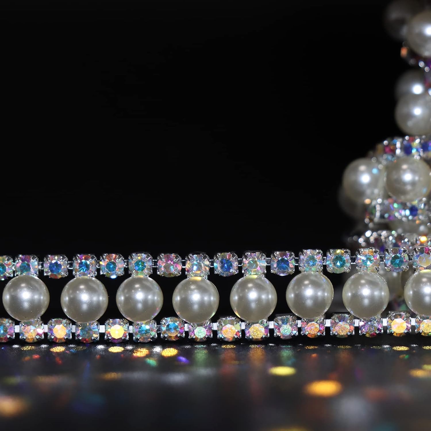 Jerler Rhinestone Trim Applique 1 Yard 2 Rows Crystal Chain Banding Diamond Inlaid White Pearl Beaded Rhinestones for Crafts Clothing and Bridal Embellishments Wedding Ideas Christmas Decorations