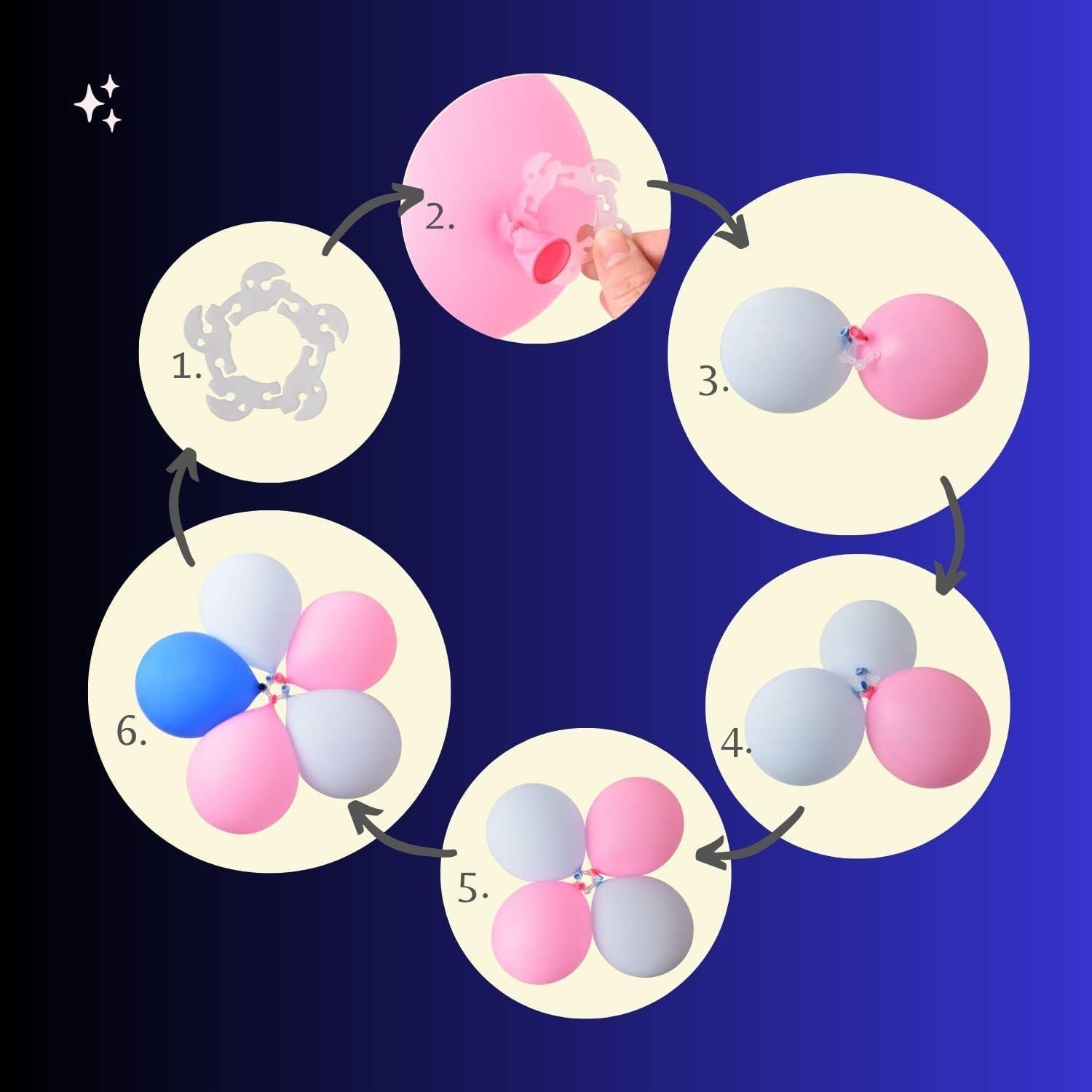 • 【Easy to Assemble Balloon Arch Ring Buckles】Each balloon accessories clips can fix 5 balloons, you just inflate your balloons and tie, then install the balloon over the clips and adjust the shape