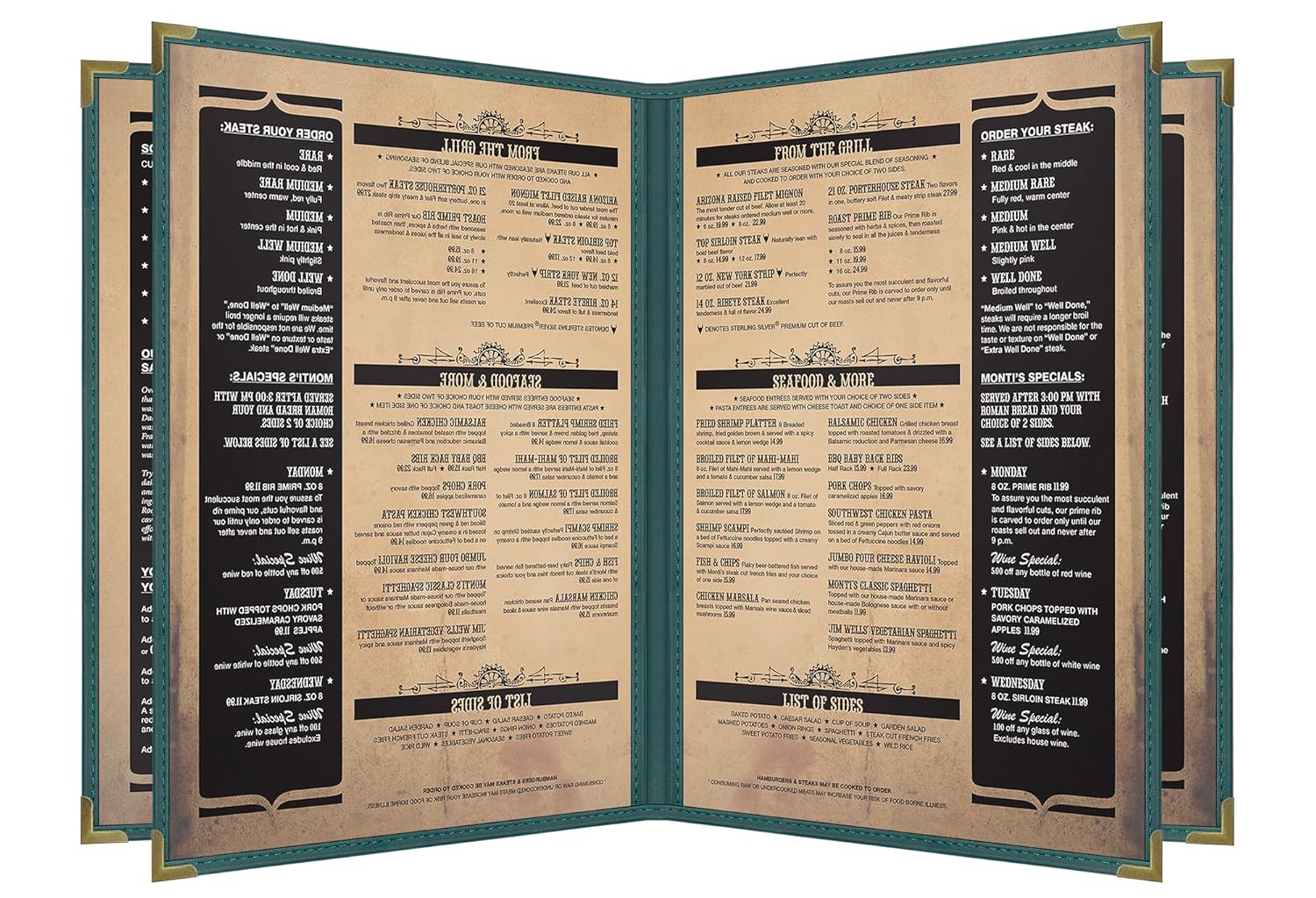 • MENU HOLDER AVAILABLE SIZES: 8.5" x 11", 8.5" x 14"; We offer a variety of menu cover sizes to meet your specific presentation needs, including 8.5" x 11" as a versatile standard size suitable for most menu types; 8.5" x 14" for larger menus with multiple categories.