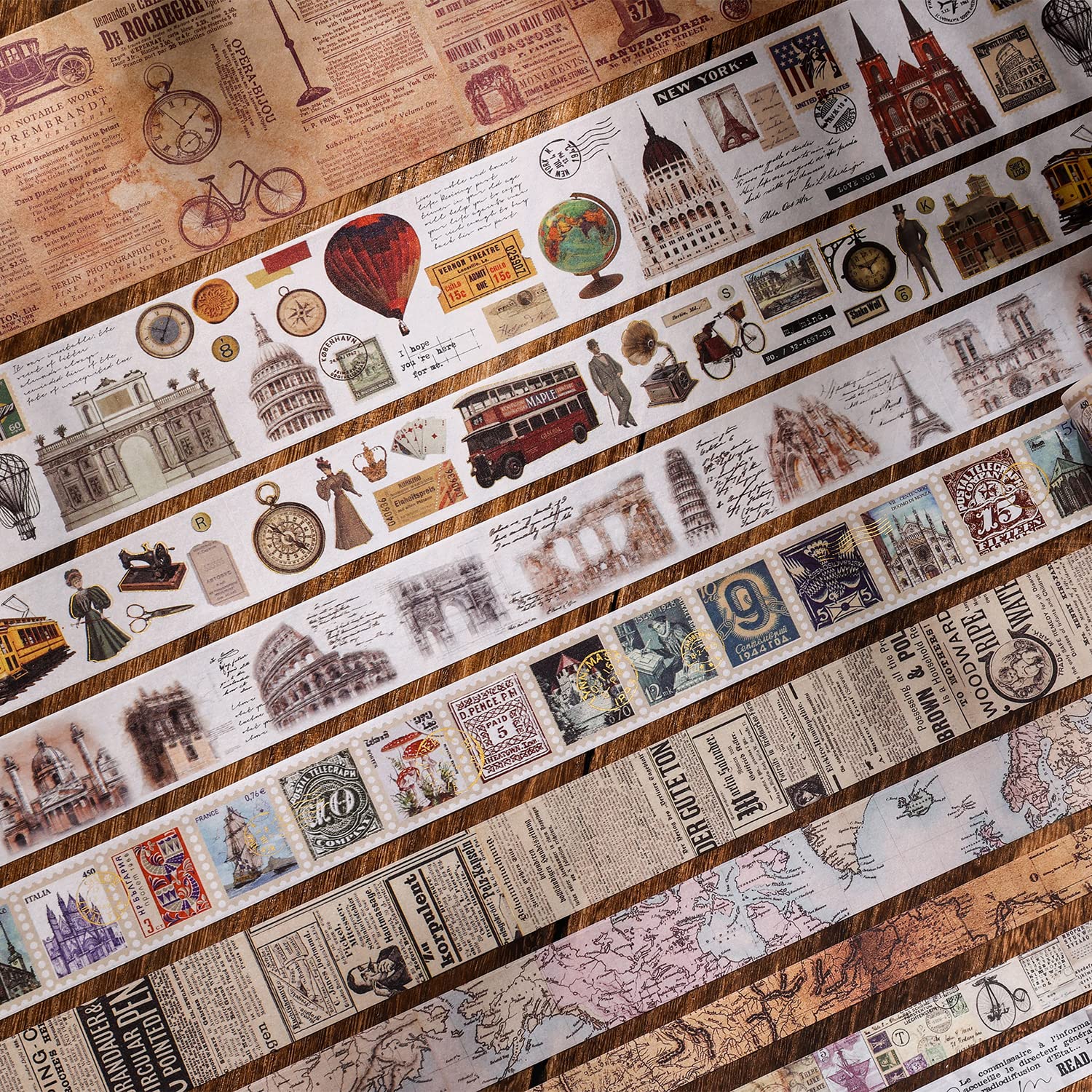 • This washi tape set comes with assorted vintage washi tape in various designs, their classic prints includeantique music sheets, handwritten script, world architecture, old newspaper articles, bicycles and electronic devices, retro buildings bike decals and more. which look very classic and vintage aesthetic washi tape kit, not easy to go out of date, bringing you enjoyment.