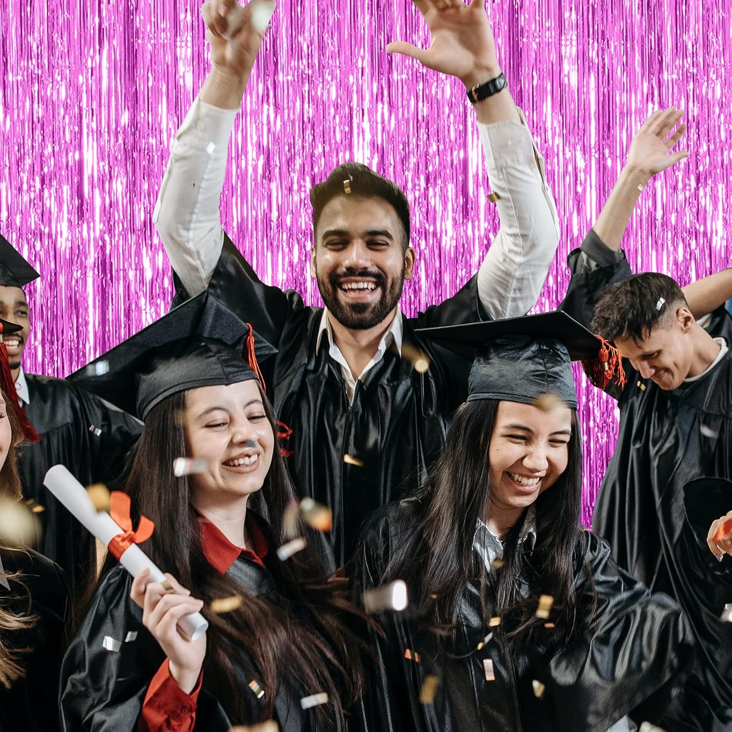 2 Pack Hot Pink Backdrop Curtain Party Streamers Hot Pink Birthday Decorations Foil Fringe Photo Backdrop Party Supplies Fiesta Grad Theme Decorations