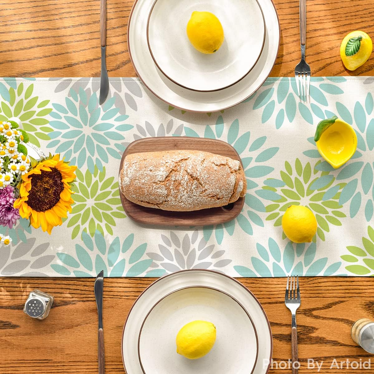 Artoid Mode Green Dahlia Floral Pinnata Summer Table Runner, Spring Kitchen Dining Table Decoration for Home Party Decor 13x72 Inch