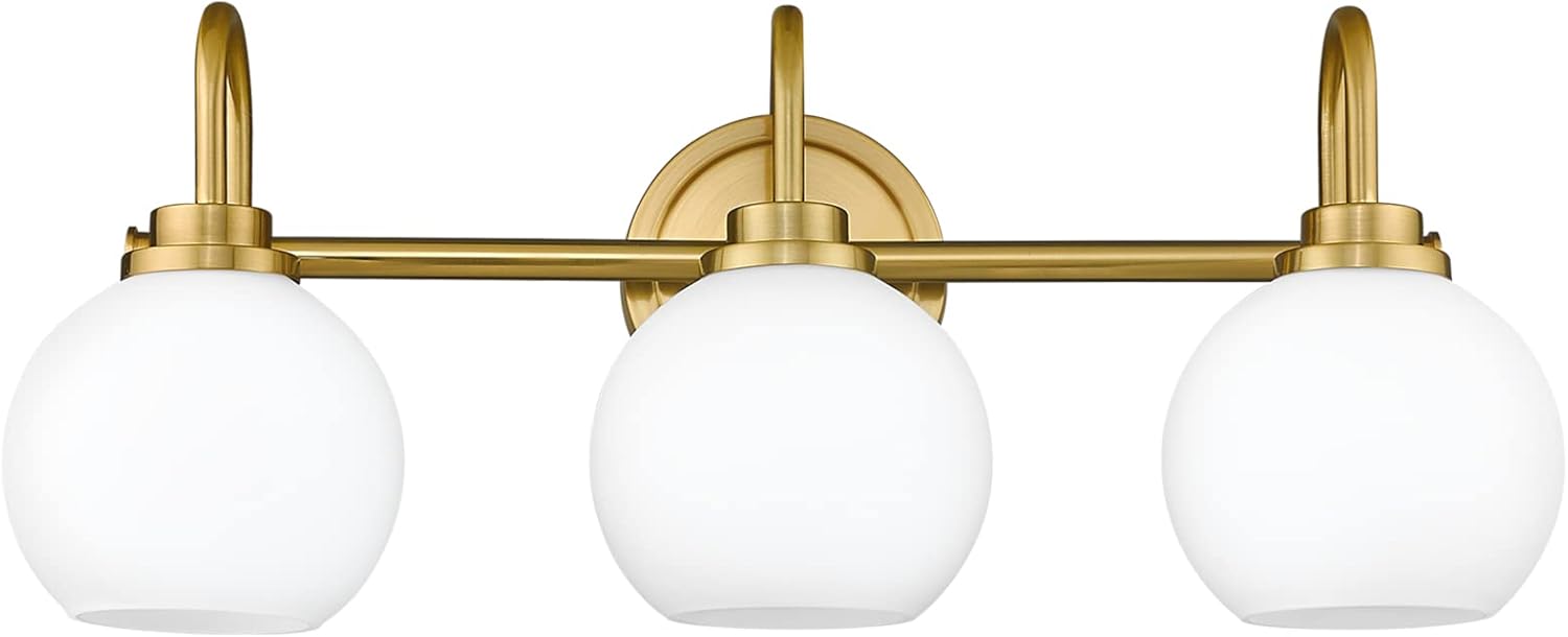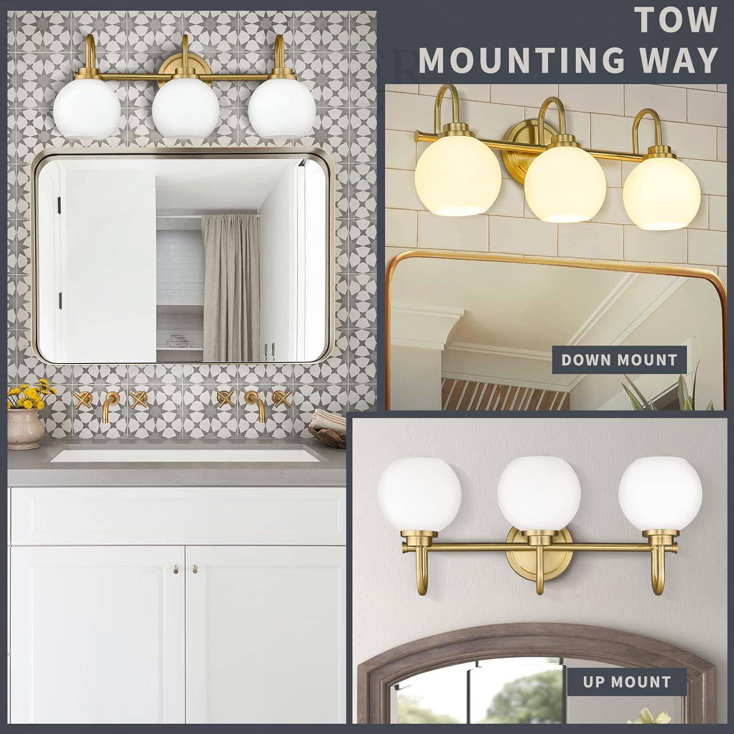 Gold Bathroom Light Fixtures, 3 Light Gold Modern Bathroom Light Fixtures Over Mirror with White Milk White Globe Glass Shade for Bathroom