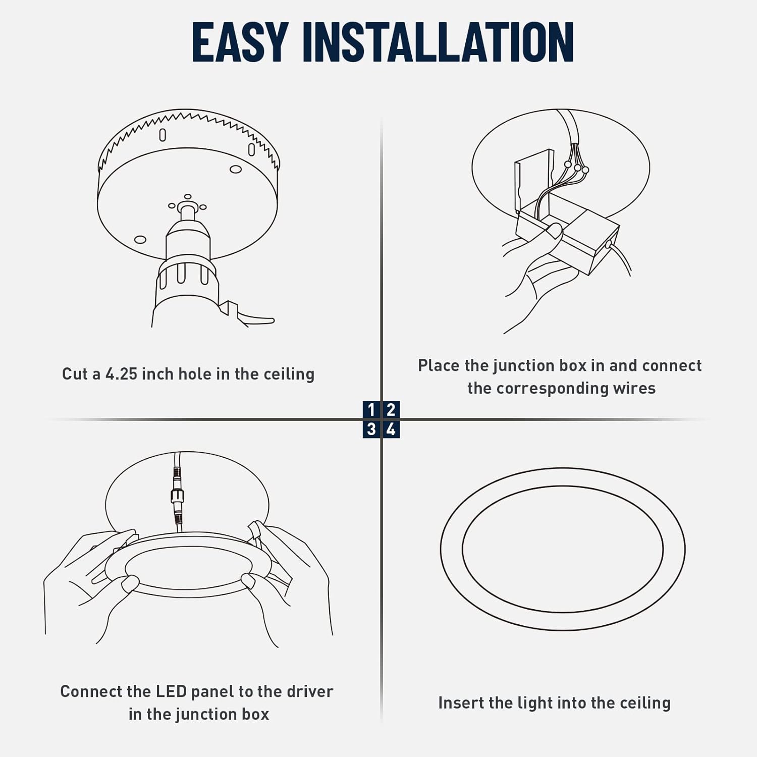 • 💡【Easy Installation】 Recessed lighting suitable for renovations and new renovations. The can lights package we send to you is accompanied by a detailed manual. Can LED recessed light 4 inch with junction box, you only need to cut a hole in the ceiling, fix its size, and then fold the spring support upwards and push it up into the hole. It can be done in a few minutes, and the installation is worry-free.