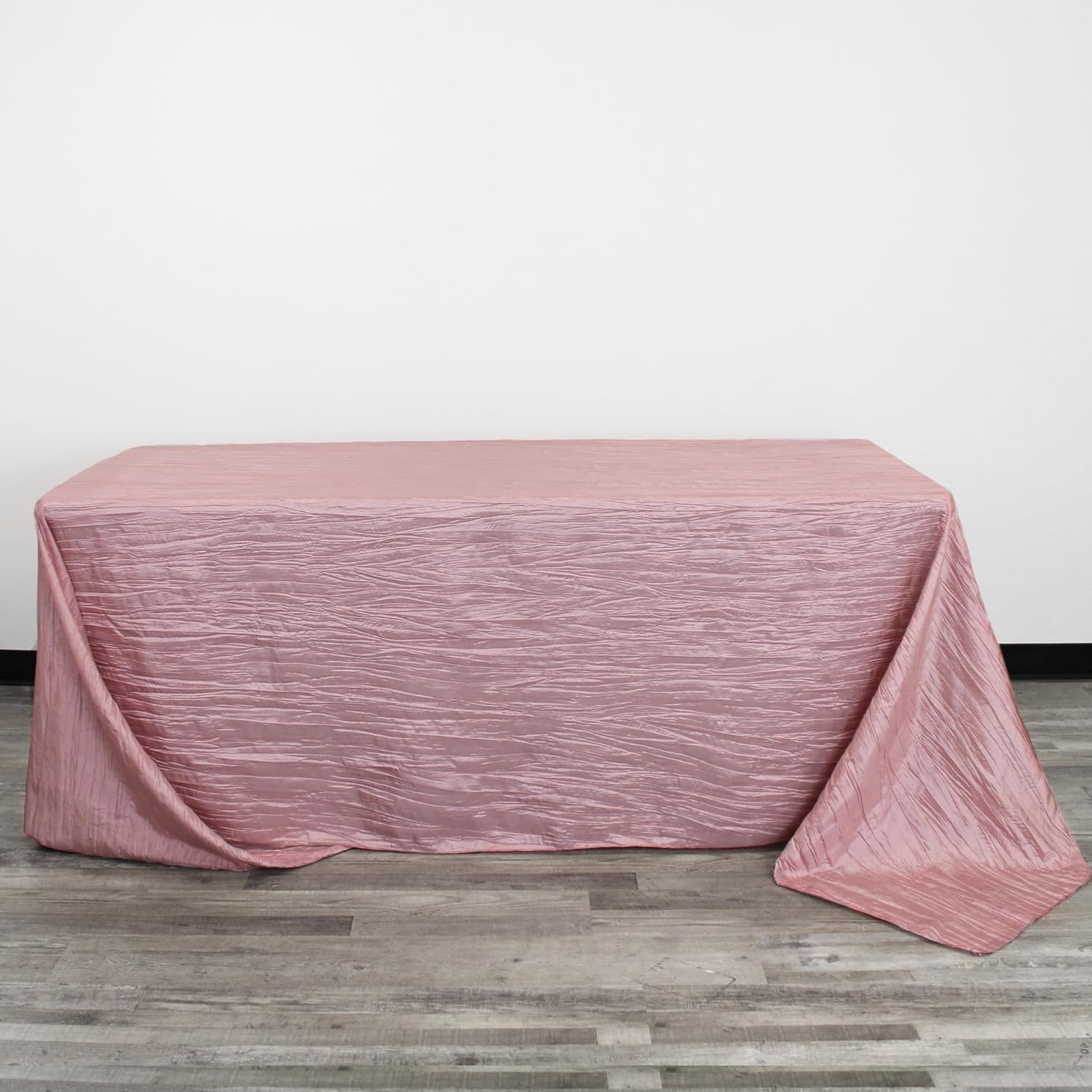 YOUR CHAIR COVERS - 90 x 132 inch Rectangular Crinkle Taffeta Tablecloth - Dusty Rose, Rectangle Table Linens for 6 ft Rectangular Tables, Wedding Crushed Table Cloth
