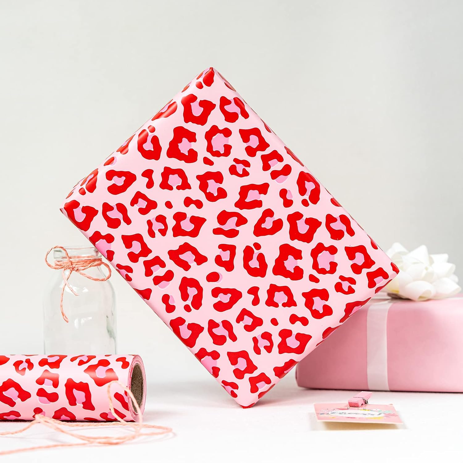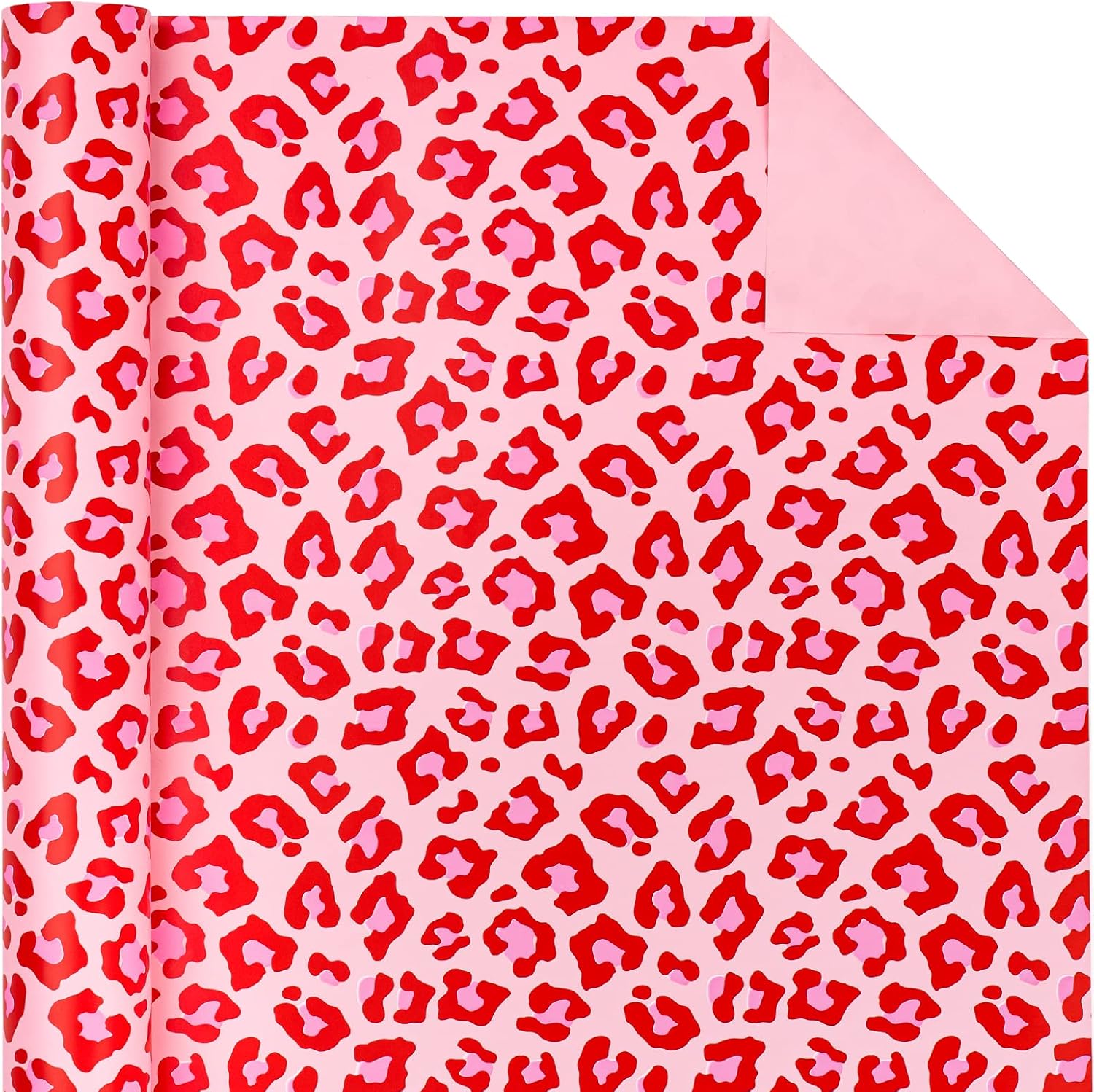 WRAPAHOLIC Reversible Leopard Wrapping Paper - Mini Roll - 17 Inch X 33 Feet - Hot Pink Girls Birthday Wrapping Paper for Birthday, Holiday, Baby Shower