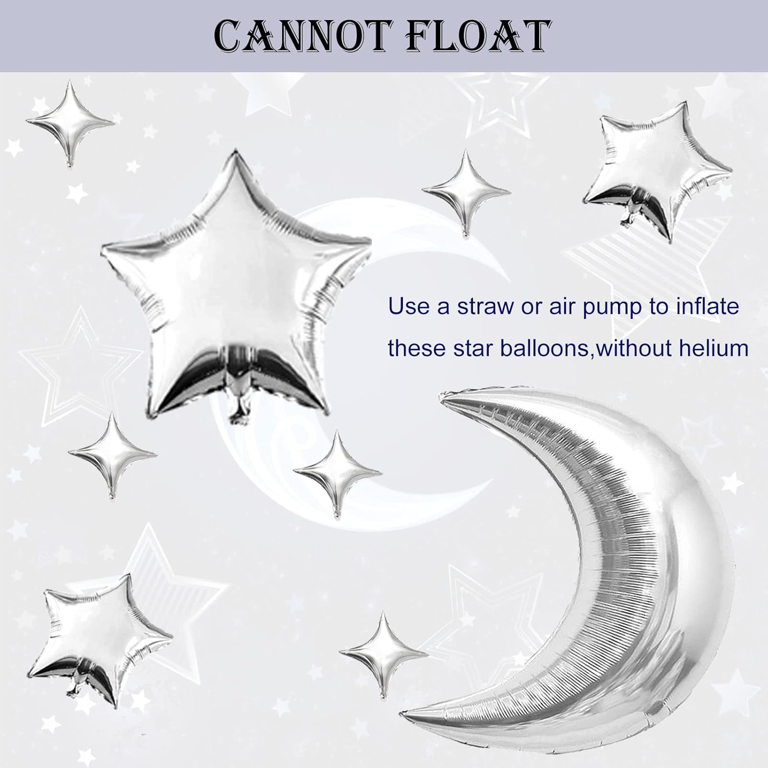 50pcs Silver Moon and Star Balloons,36"Moon Foil Balloons 18"10" Star Foil Balloons Four Pointed Star Balloon Mylar Balloon for Baby Shower Christmas Wedding Birthday Party