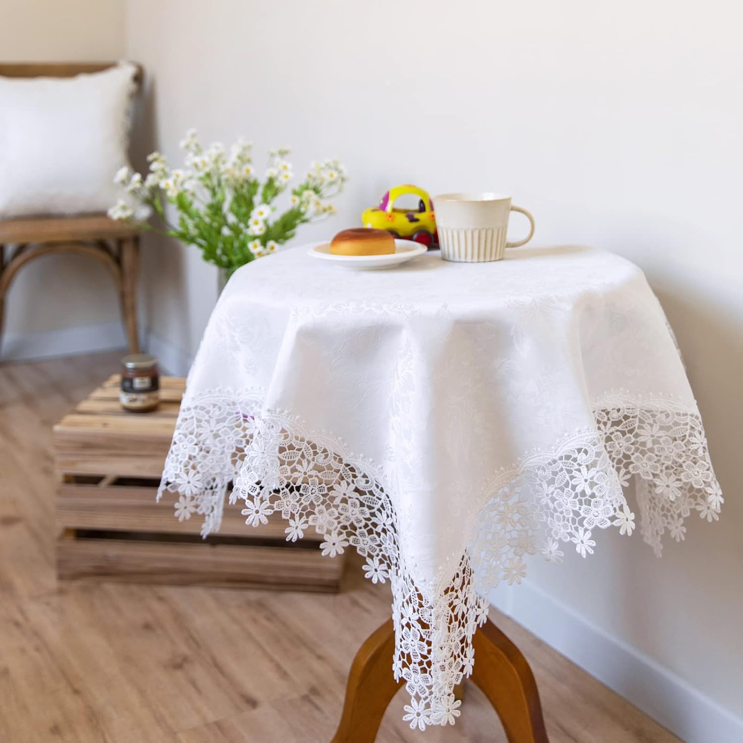 White lace Premium Square Farmhouse Tablecloth Waterproof OilProof SpillProof AntiShrink Soft Wrinkle Resistant Decorative Fabric Table Cover Kitchen Dinning Party Wedding Banquet