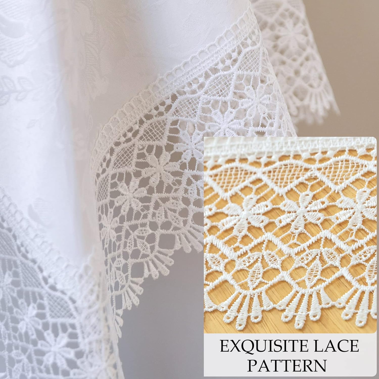 White lace Premium Square Farmhouse Tablecloth Waterproof OilProof SpillProof AntiShrink Soft Wrinkle Resistant Decorative Fabric Table Cover Kitchen Dinning Party Wedding Banquet