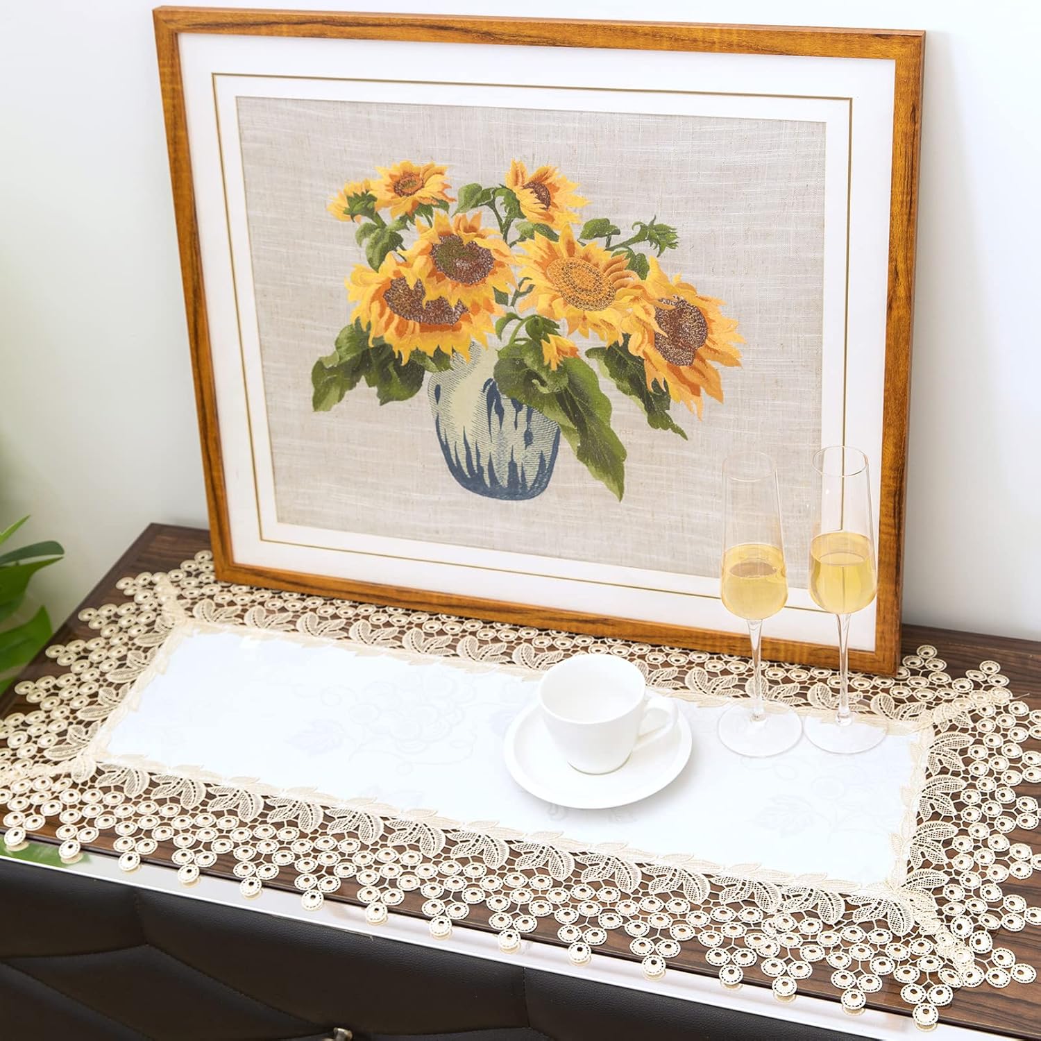 Beige lace Premium Rectangle Farmhouse Tablerunner Waterproof OilProof SpillProof AntiShrink Soft Wrinkle Resistant Decorative Fabric Table Cover Kitchen Dinning Party Wedding banque