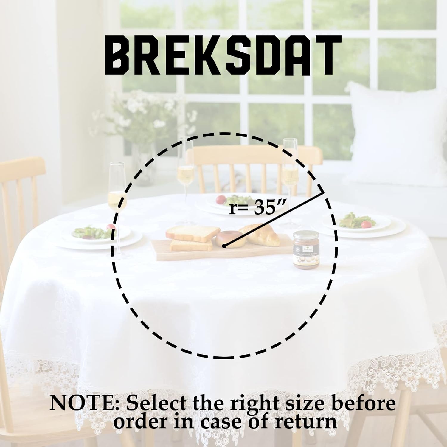 White lace Premium Round Farmhouse Table Runner Waterproof OilProof SpillProof AntiShrink Soft Wrinkle Resistant Decorative Fabric Table Cover Kitchen Dinning Party Wedding Banquet