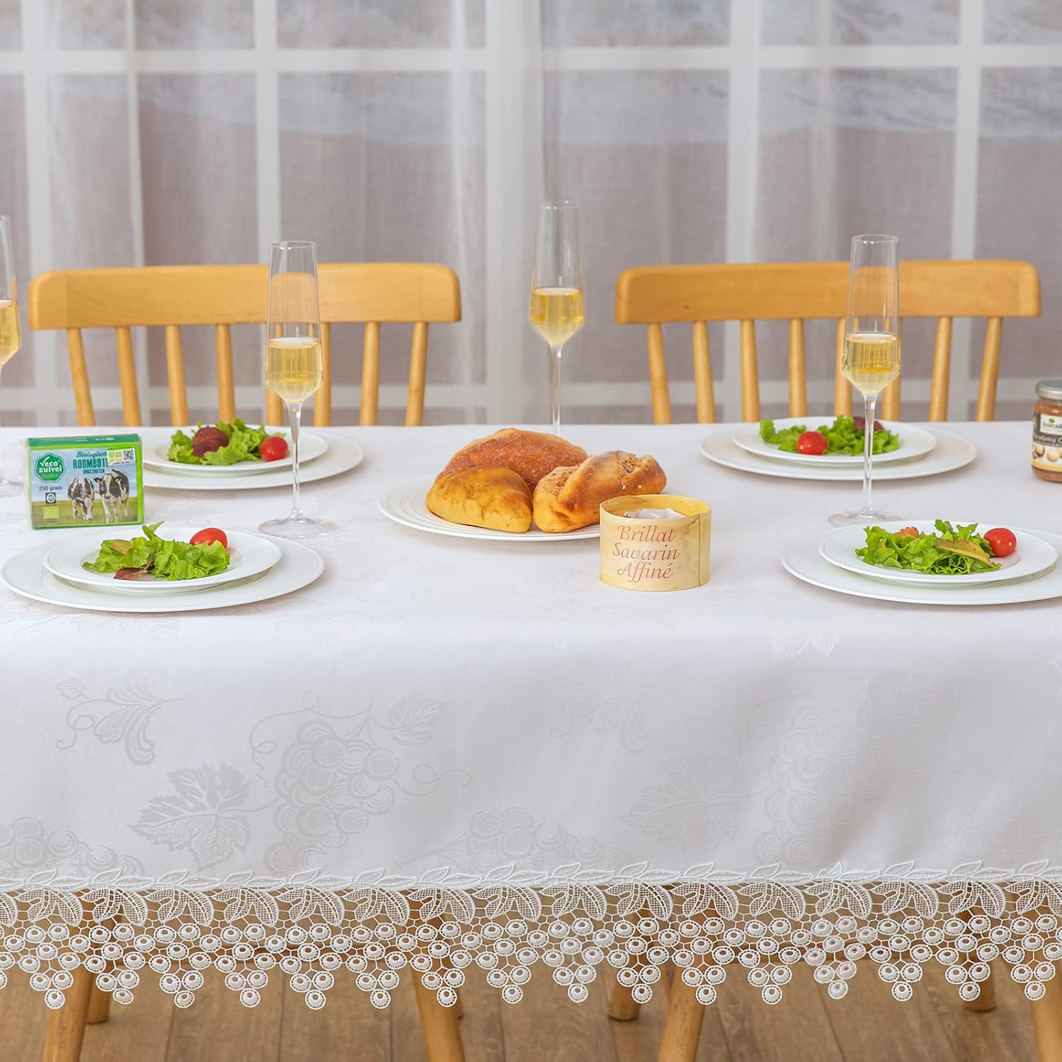 White lace Premium Rectangle Farmhouse Tablecloth Waterproof OilProof SpillProof AntiShrink Soft Wrinkle Resistant Decorative Fabric Table Cover Kitchen Dinning Party Wedding Banquet