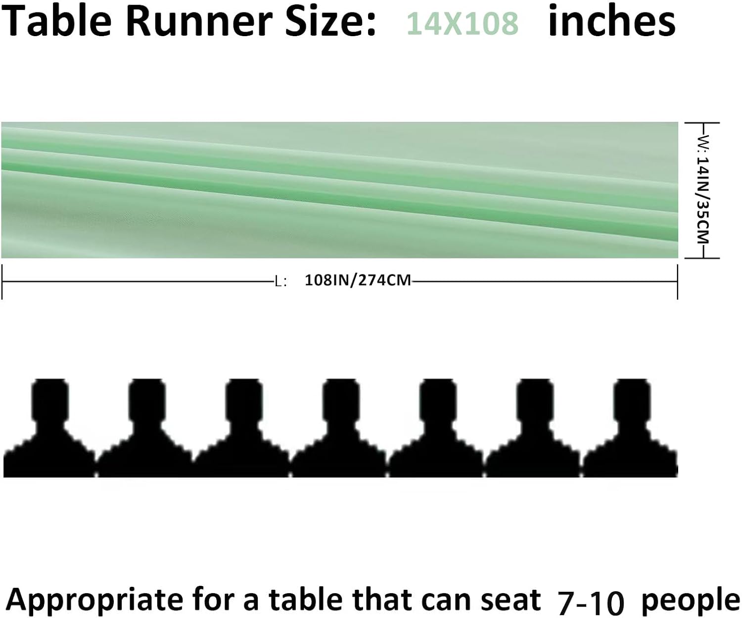 • Size:12 pack sheer chiffon table runner (14x108 inches),suitable for 6-10 seats either round or rectangle table,9 Ft is a perfect length for your event's table decorations.