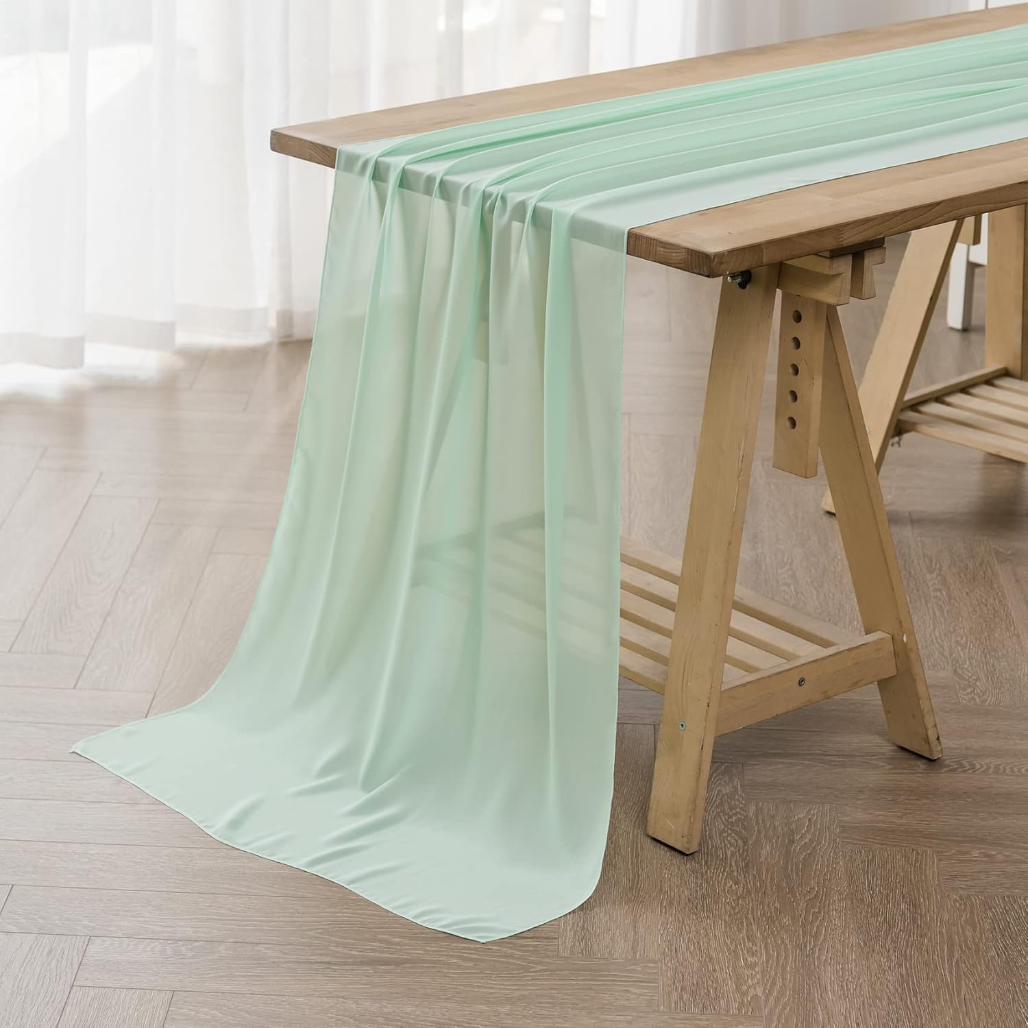 6Pack 9ft Chiffon Table Runner 14x108 Inch Sheer Romantic Table Runner for Wedding Birthday Party Bridal Shower Outdoor Decoration-Mint