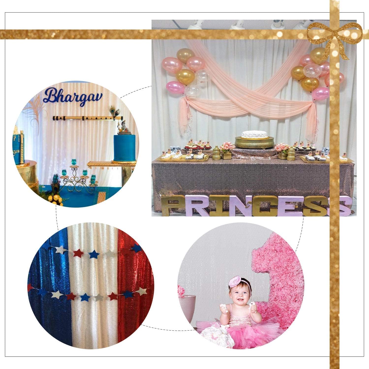 • 【Multiple Application Backdrop】This shiny sequin backdrop is Ideals choice of Wedding, birthday parties, baby shower, Christmas, Halloween and more.