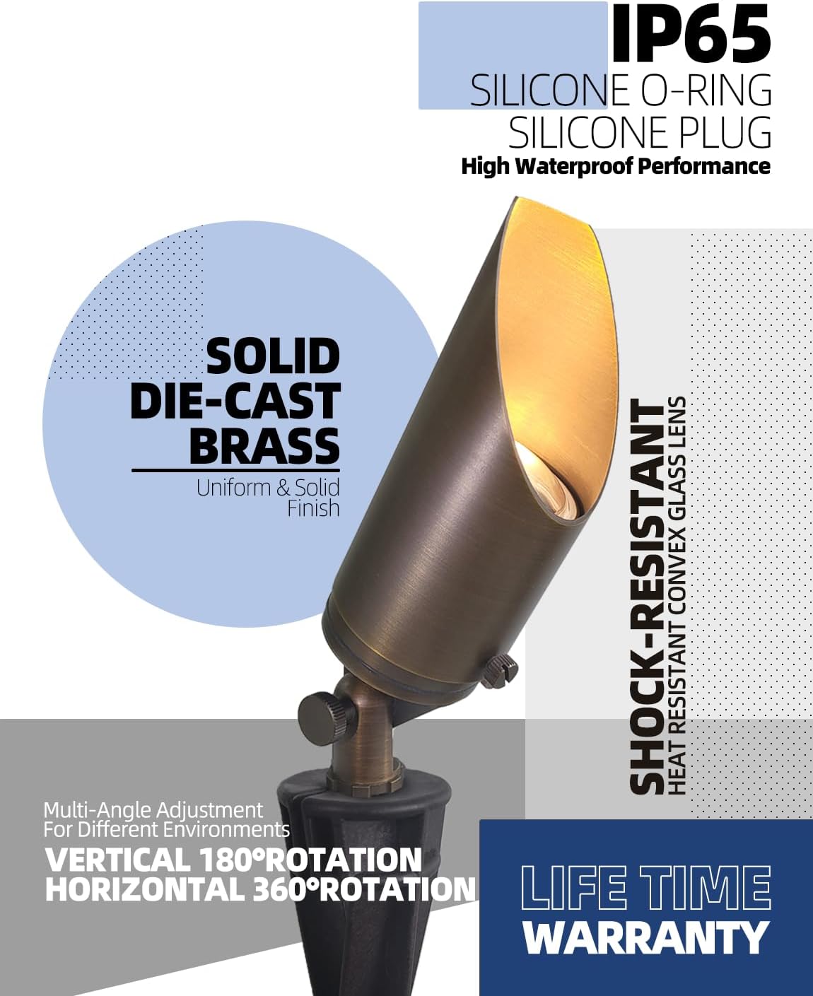 • BRASS LIGHT FIXTURE:MALORY landscape spotlight is constructed of die-cast brass for durability and beauty.Brass spot light doesn't corrode,more durable and reliable than aluminum and plastic fixtures,ideal for any uplighting application.Simple design structure for the light fixture make it looks beautiful yet unobtrusive in any landscape,suitable for decorating most houses and yards.