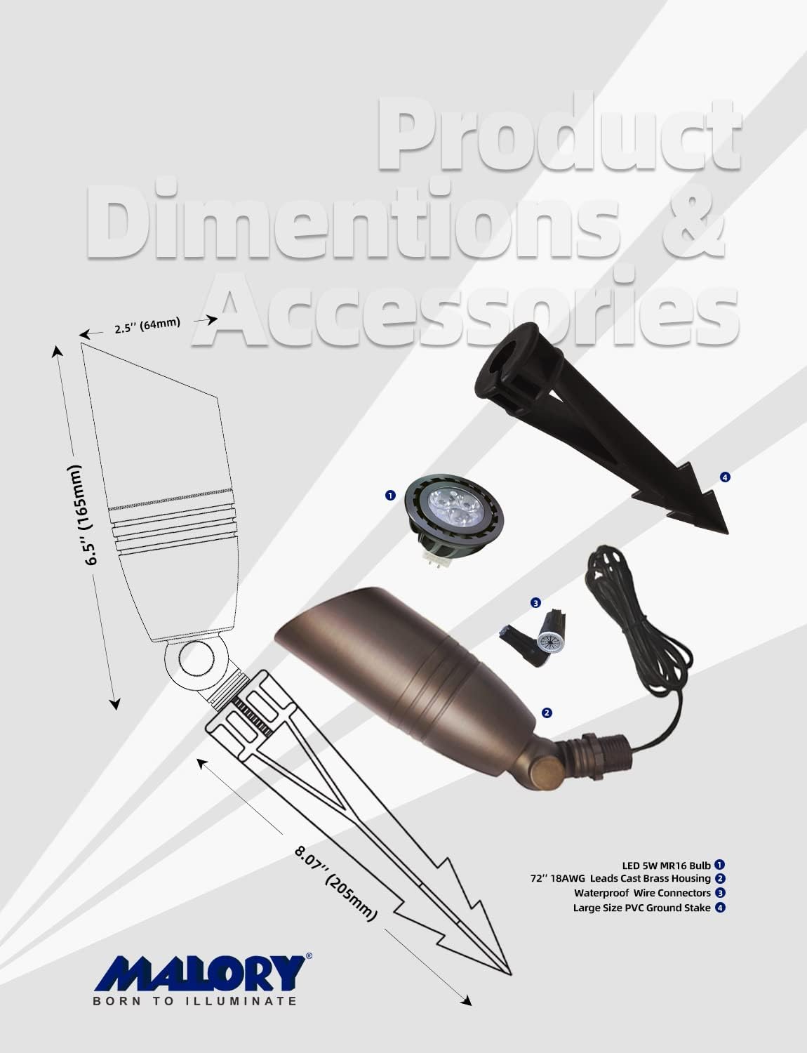 • BRASS LIGHT FIXTURE:MALORY landscape spotlight is constructed of die-cast brass for durability and beauty.Brass spot light doesn't corrode,more durable and reliable than aluminum and plastic fixtures,ideal for any uplighting application.Simple design structure for the light fixture make it looks beautiful yet unobtrusive in any landscape,suitable for decorating most houses and yards.