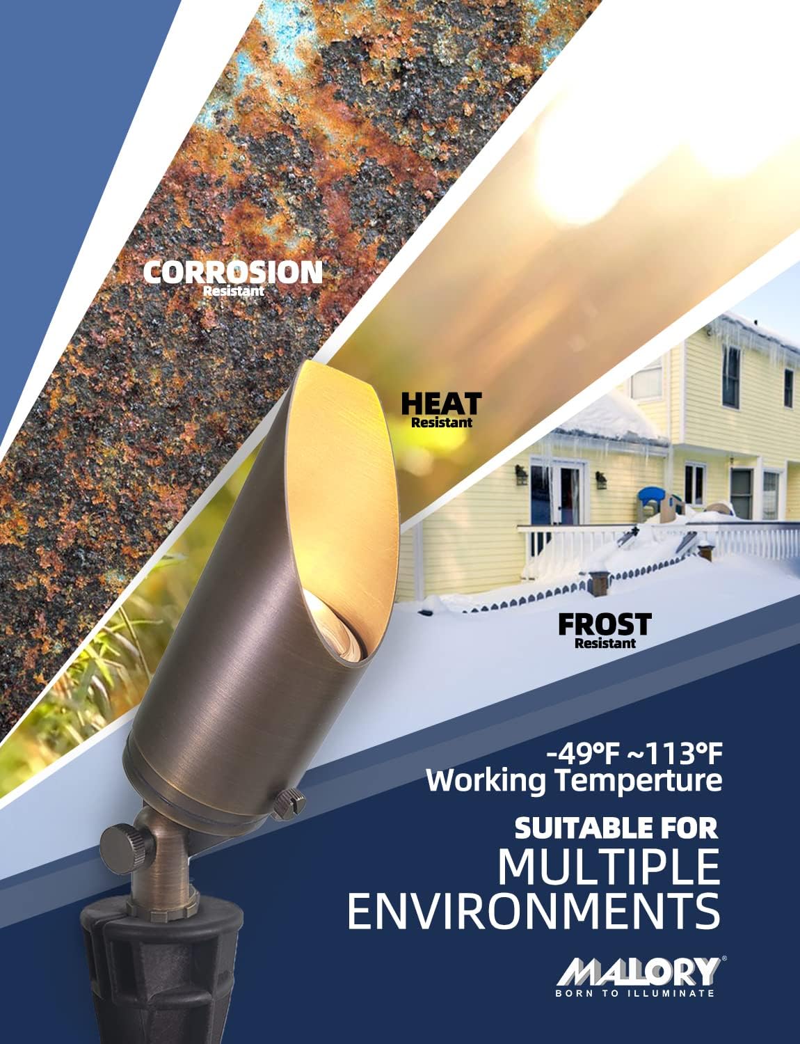 • BRASS LIGHT FIXTURE:MALORY landscape spotlight is constructed of die-cast brass for durability and beauty.Brass spot light doesn't corrode,more durable and reliable than aluminum and plastic fixtures,ideal for any uplighting application.Simple design structure for the light fixture make it looks beautiful yet unobtrusive in any landscape,suitable for decorating most houses and yards.